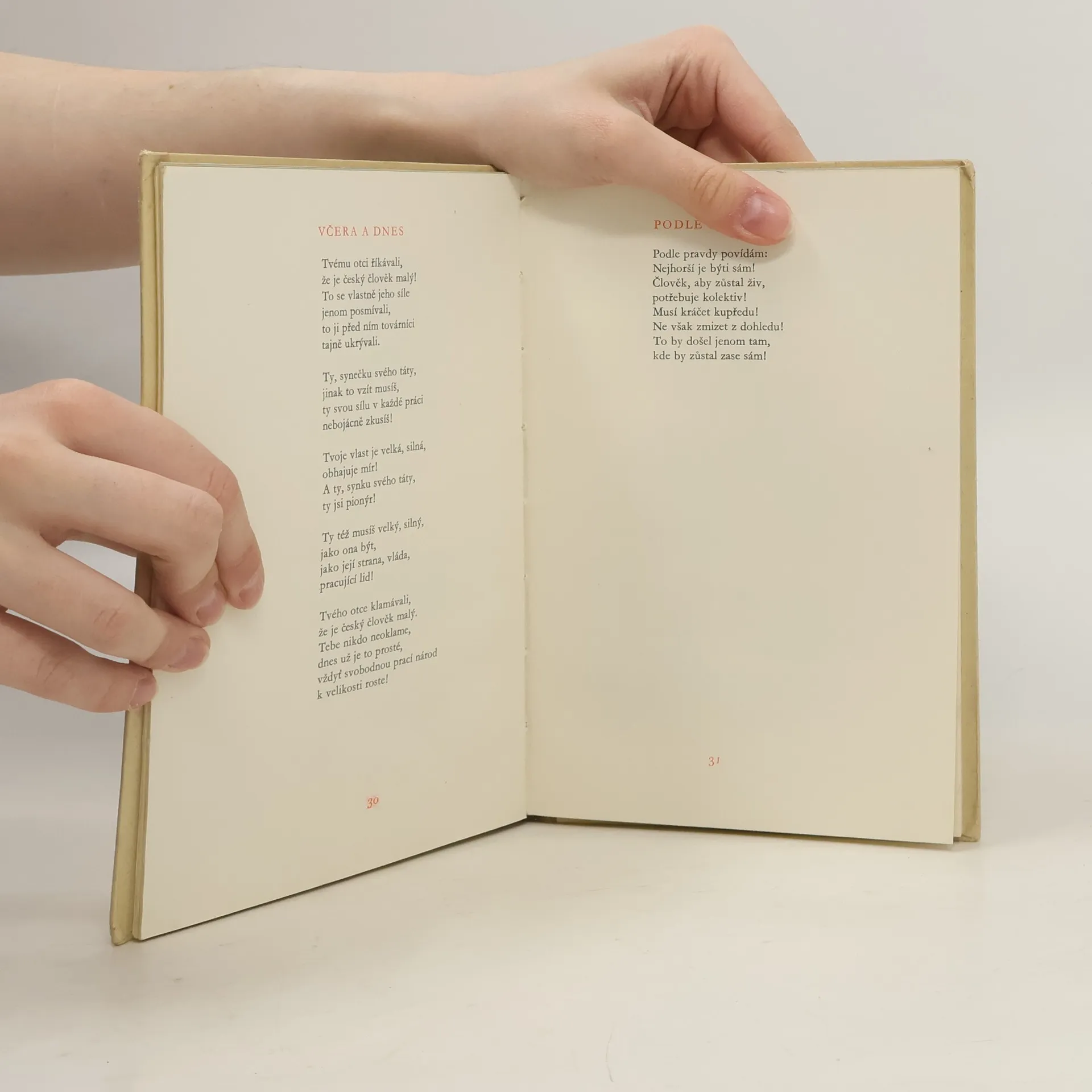V básních, určených našim dětem a mládeži, konfrontuje autor šťastný věk našich dětí s životem za kapitalismu. V cyklu, který by mohl nést název "Čím budu", jsou shromážděny verše k chvále řemesel a povolání. Politická themata mají básně Kritika, Šeptanda aj., zařazené na koncisbírky. Úvodní básně knihy slaví velké bojovníky Lenina a Stalina a pozdravují vlast a stranu.