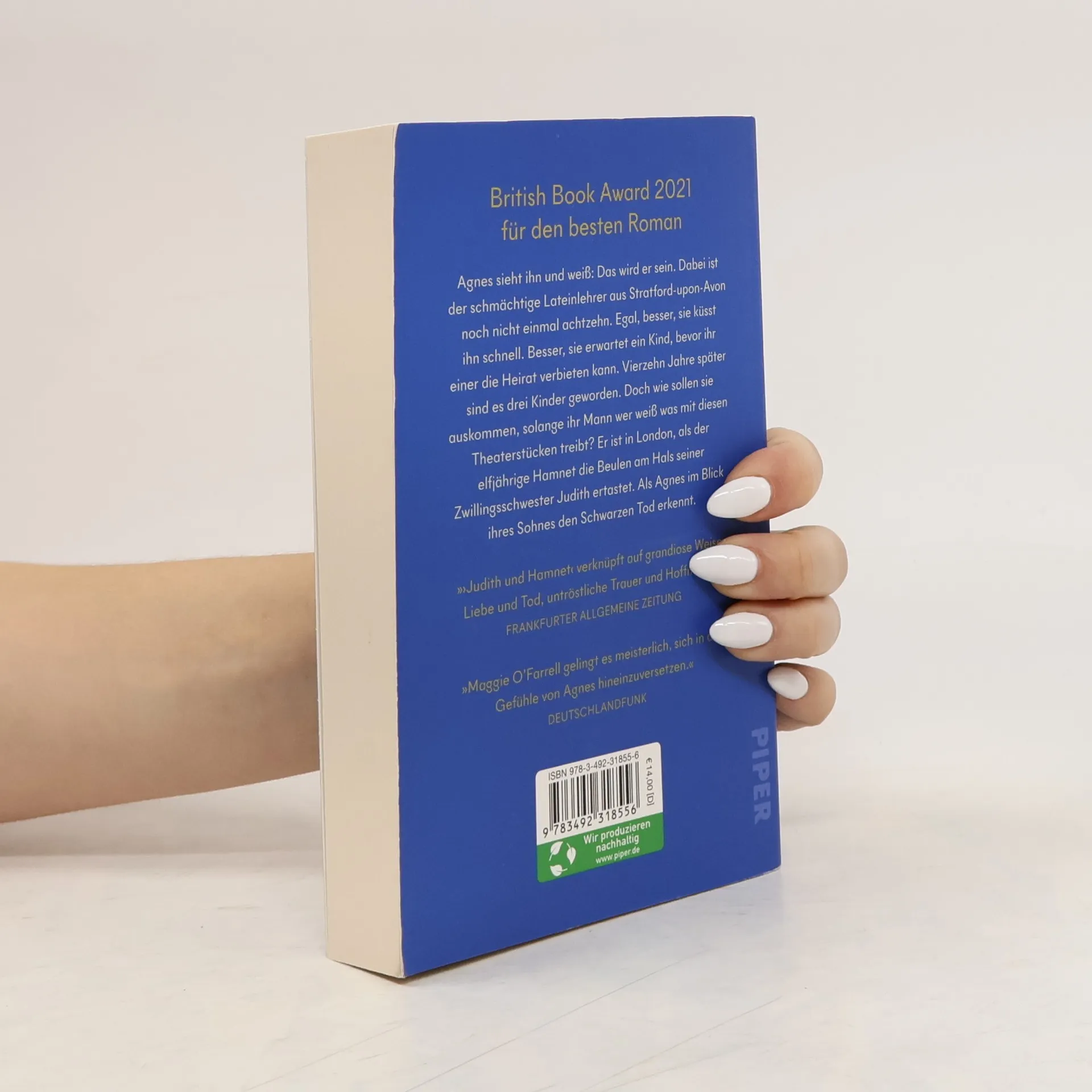 Über ein halbes Jahr in der Top 10 der Sunday Times Einer der fünf besten Romane des Jahres der New York Times »Maggie O’Farrell erzählt eine der spannendsten Geschichten überhaupt: die Geschichte, wie aus Leben Literatur wird. Magisch!« Denis Scheck Agnes sieht ihn und weiß: Das wird er sein. Dabei ist der schmächtige Lateinlehrer aus Stratford-upon-Avon noch nicht einmal achtzehn. Egal, besser, sie küsst ihn schnell. Besser, sie erwartet ein Kind, bevor ihr einer die Heirat verbieten kann. Vierzehn Jahre später sind es drei Kinder geworden. Doch wie sollen sie auskommen, solange ihr Mann wer weiß was mit diesen Theaterstücken treibt? Er ist in London, als der elfjährige Hamnet die Beulen am Hals seiner Zwillingsschwester Judith ertastet. Als Agnes im Blick ihres Sohnes den Schwarzen Tod erkennt. Maggie O’Farrell entdeckt den bedeutendsten aller Dramatiker neu, als Liebenden und als Vater. Vor allem aber erzählt sie zum ersten Mal die unvergessliche Geschichte seiner eigensinnigen, zärtlich kühnen Frau: Agnes. »›Judith und Hamnet‹ verknüpft auf grandiose Weise Liebe und Tod, untröstliche Trauer und Hoffnung, Hamnets einsames Sterben und sein Fortleben im Werk des abwesenden Vaters.« Frankfurter Allgemeine Zeitung »Maggie O’Farrell ist eine absolute Ausnahmeerscheinung. Offenbar kann sie beim Schreiben so ziemlich alles tun, was sie will.« The Guardian »›Judith und Hamnet‹ ist ein brillanter Roman.« Süddeutsche Zeitung »O’Farrells Geniestreich besteht darin, die Spärlichkeit der Informationen über Shakespeares Privatleben als literarische Chance zu begreifen – und in der Verbindung, die sie zwischen seinem toten Sohn und seinem großartigsten Stück herstellt.« The New York Times »Was Maggie O’Farrells Schaffen auf eine andere Stufe hebt, sind ihre scharfsinnige Beobachtungsgabe und ihre Figuren, so herzzerreißend lebendig, dass man sie manchmal direkt in den Arm nehmen will.« The Sunday Times »Es gibt Bücher, die stoßen eine Tür auf und schubsen einen hinein in ein Jetzt, das so nah, so absolut erscheint wie der eigene Herzschlag. Jede Zeile hat bei Maggie O’Farrell etwas Pulsierendes, und zugleich spürt man in jedem Moment, wie fragil der Lebensstrom ist und dass jede Fülle plötzlich vorbei sein kann.« Brigitte »Maggie O’Farrell gelingt es meisterlich, sich in die Gefühle von Agnes, einer Frau, die im 16. Jahrhundert lebte, hineinzuversetzen.« Deutschlandfunk »Eine zu Tränen rührende und doch tröstliche Geschichte über Liebe und Tod in Pandemie-Zeiten.« MDR Kultur »Ein Buch wie ein schimmerndes Wunder.« David Mitchell