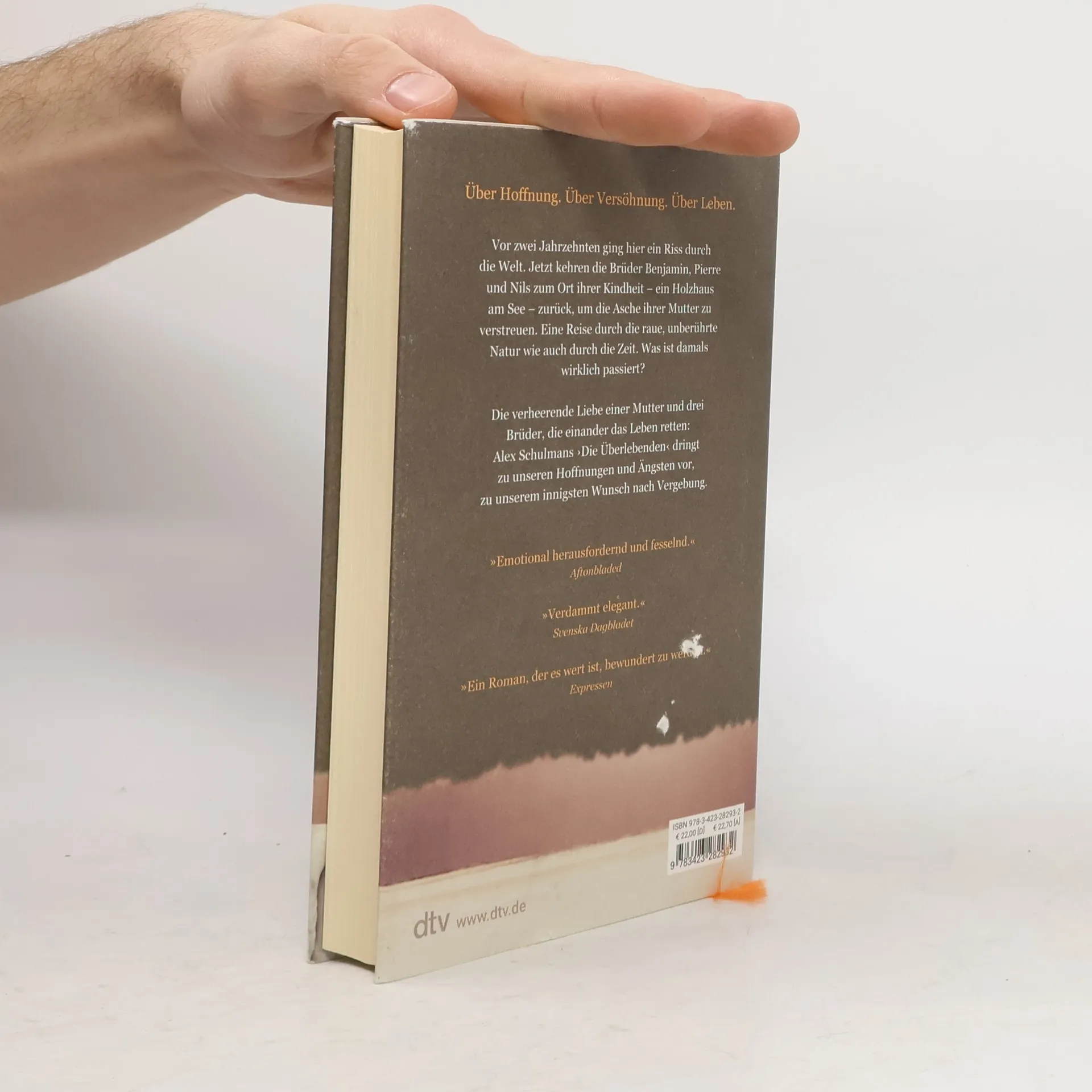 Über Hoffnung. Über Versöhnung. Über Leben Nach zwei Jahrzehnten kehren die Brüder Benjamin, Pierre und Nils zum Ort ihrer Kindheit – ein Holzhaus am See – zurück, um die Asche ihrer Mutter zu verstreuen. Eine Reise durch die raue, unberührte Natur wie auch durch die Zeit. Im Kampf um die Liebe der Mutter, die abweisend und grob, dann wieder beinahe zärtlich war, haben die Jungen sich damals aufgerieben bis zur Erschöpfung. Heute fühlen sie sich so weit voneinander entfernt, dass es kein Aufeinanderzu mehr zu geben scheint. Und doch ist da dieser Rest Hoffnung, den Riss in der Welt zu kitten, wenn sie sich noch einmal gemeinsam in die Vergangenheit vorwagen.