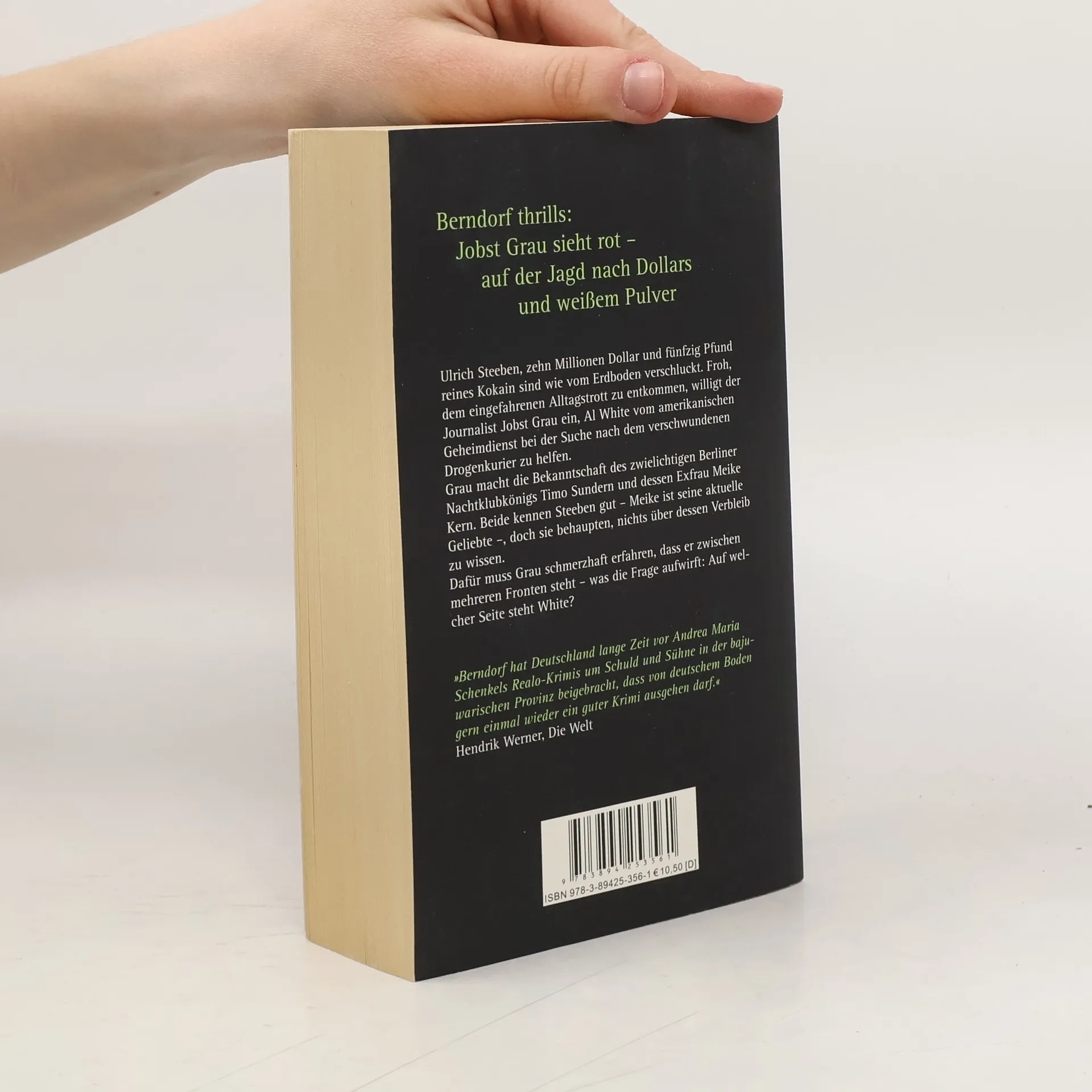 Jobst Grau, Redakteur bei einer Bonner Tageszeitung, hat genug von seinem Job; selbst die Aussicht auf Urlaub hebt seine Stimmung nicht. Da erhält er einen Anruf von Al White, einem Mitarbeiter der DEA, des US-amerikanischen Geheimdienstes zur Drogenbekämpfung. Die beiden Männer kennen sich zwar nur flüchtig, doch als White dem Journalisten einen lukrativen Job anbietet, sagt Grau nicht Nein. Er soll Ulrich Steeben ausfindig machen, einen Kurier des Auswärtigen Amtes, der angeblich mit 10 Millionen Dollar und 50 Pfund reinem Kokain von Rio nach Berlin geflogen und nun nicht mehr auffindbar ist. Grau reist nach Berlin, um sich dort in der Szene umzuhören. Seine erste Anlaufstelle ist Nachtklubbesitzer Timo Sundern, der überall seine Finger im Spiel hat. Außerdem war Sunderns Exfrau Meike Kern mit dem verschwundenen Ulrich Steeben gut befreundet - weiß sie etwas über den Verbleib des Kuriers? Und sagt Sundern die Wahrheit, wenn er behauptet, nichts mit den Dollars und dem Koks zu tun zu haben? Schnell gerät Grau zwischen die Fronten - und auf welcher Seite steht White?