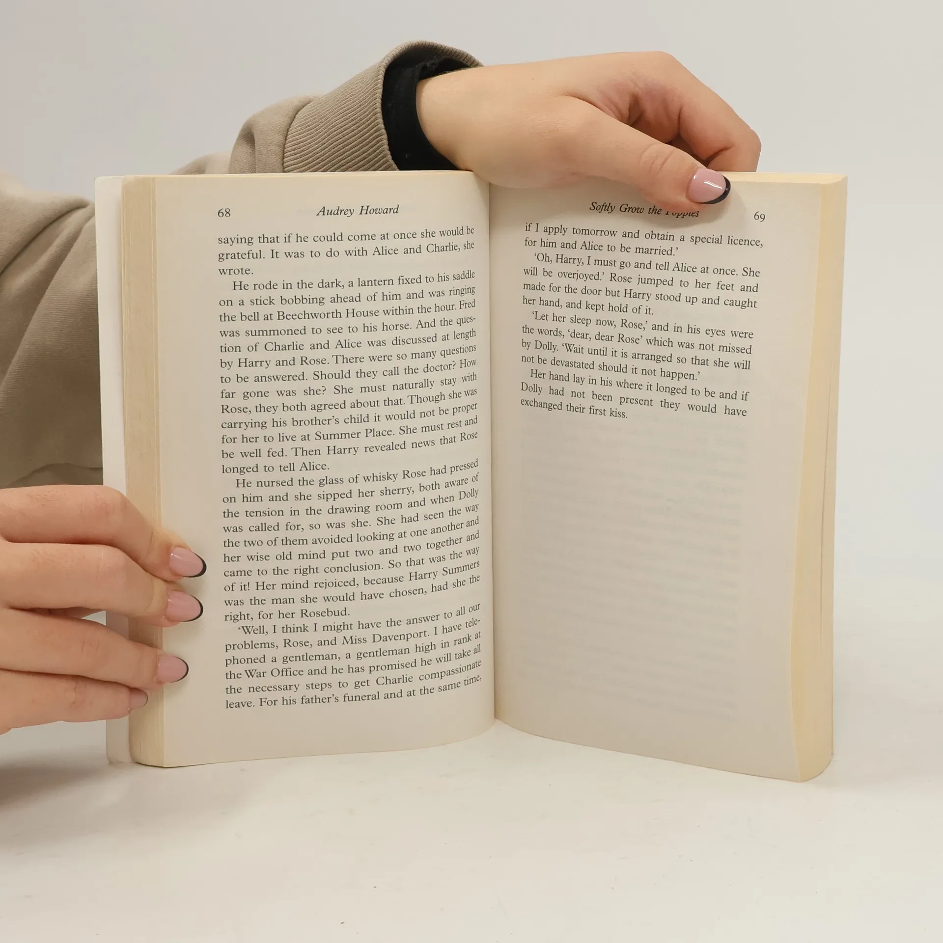 Set against the background of World War I and two stately homes that became hospitals for the wounded, Softly Grow The Poppies is an epic saga of love and war.Rose Beechworth is mistress of a charming country house, left to her by her wealthy father. In the summer of 1914, her friend Alice Weatherly, a spoilt but lovable heiress, longs to kiss Captain Charlie Summers goodbye. When Rose accompanies Alice to Liverpool's Lime Street Station, she meets Charlie's brother Harry ... and falls head over heels in love.As the war takes its terrible toll, Alice becomes a wayward heroine, while Rose finds herself running not one but two great houses, and it seems impossible that any of them will ever find happiness again ...