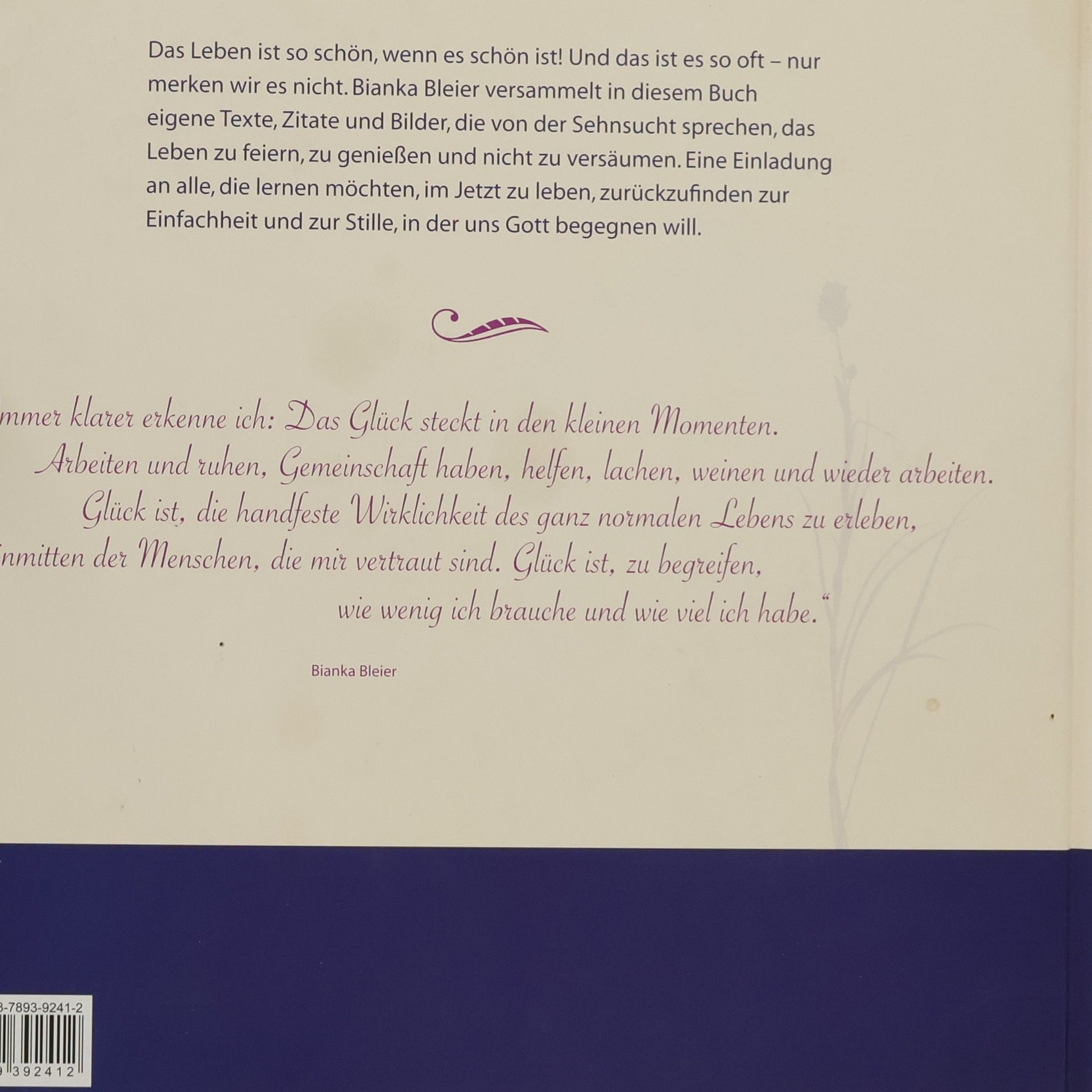Das Leben ist so schön, wenn es schön ist! Und das ist es so oft - nur merken wir es nicht. Bianka Bleier versammelt in diesem Buch eigene Texte, Zitate und Bilder, die von der Sehnsucht sprechen, das Leben zu feiern, zu genießen und nicht zu versäumen. Eine Einladung an alle, die lernen möchten, im Jetzt zu leben, zurückzufinden zur Einfachheit und zur Stille, in der uns Gott begegnen will.