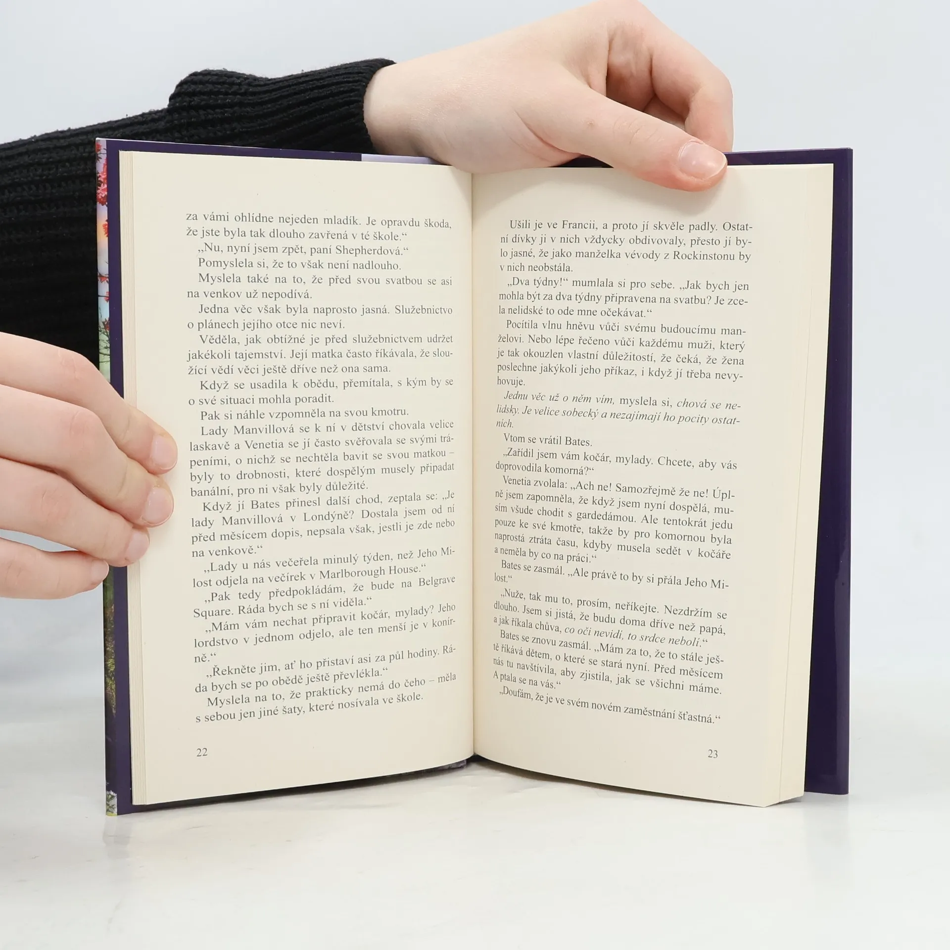 Mladičká Venetia, dcera vévody z Lynbrooku, studuje v klášterní škole ve Francii. Je zcela ponořená do učení a příliš se nezajímá o svět za branami kláštera – a ještě méně o muže. Jaké je proto její překvapení, když pro ni nechá poslat její otec a po návratu do Londýna jí sdělí, že se má provdat za vévodu z Rockinstonu. A sňatek se má konat už za čtrnáct dní! Venetia se pokusí svému otci vysvětlit, že se sňatku nebrání, ale chtěla by se vdávat z lásky – a pokud by to nebylo možné, tak by alespoň ráda svého nastávajícího předem viděla. Její otec je však k jejím námitkám zcela hluchý. Vnímavá Venetia pochopí, že jí něco tají. Provdá se nakonec Venetia za muže, jehož jí vybral otec? A co vlastně vedlo vévodu z Rockinstonu k tomu, aby si ze všech dívek v Anglii vybral právě Venetii? A pokud k sňatku opravdu dojde, budou spolu šťastní?