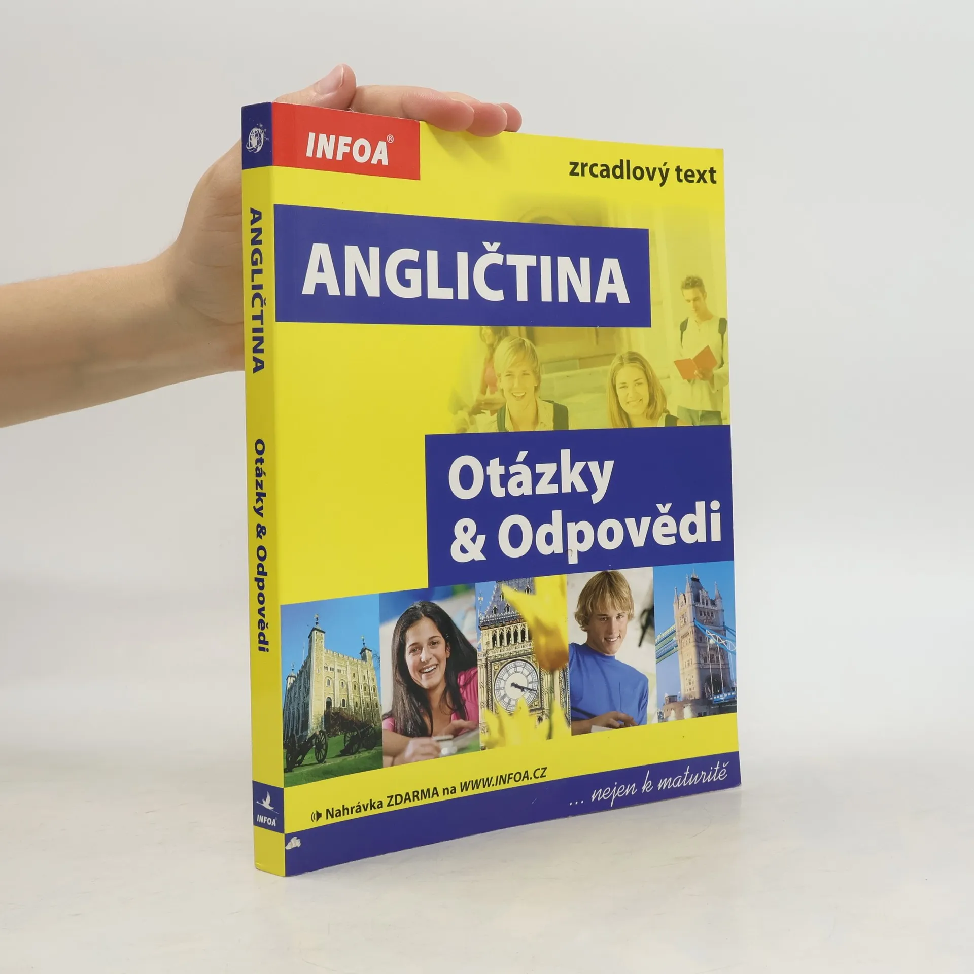 Komplexní doplněk pro úspěšné stredoškolské studium angličtiny, 28 podrobně zpracovaných témat, 68 podkapitol, 800 otázek a odpovědí, dvojjazyčné zpracování pro snazší studium, tematicky zaměřená slovní zásoba, reálie anglicky mluvících zemí, nahrávka anglických textů namluvená rodilými mluvčími V knize najdete podrobně zpracovaná témata: Rodinný život, Bydlení, Denní režim, Volný čas a zábava, Dnešní mládež, Škola a vzdělání, Volba povolání, Životopis, Pokrmy, Nakupování, Služby, Sport, Cestování, Zdraví a nemoci, Svátky, Móda a oblečení, Počasí a příroda, Umění a kultura, Média, Věda a technika, Evropská unie, Česká republika, Praha atd. Z anglických reálií témata: Spojené království Velké Británie a Severního Irska, Londýn, Spojené státy americké, Washington D. C. a jiná města v USA, Britské společenství, Anglická a americká literatura, Anglický jazyk