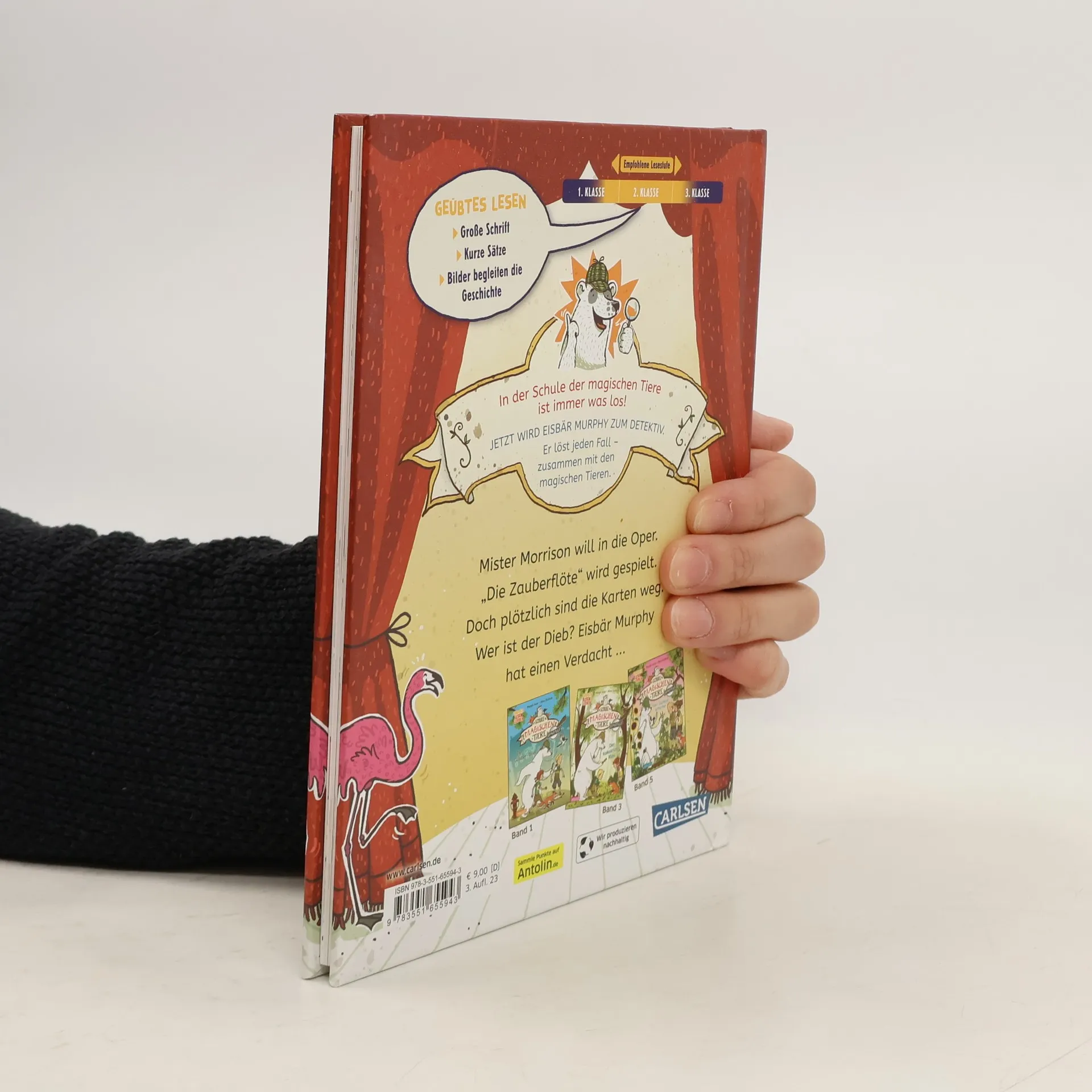 ***Die Schule der magischen Tiere – jetzt auch zum Lesenlernen!*** „Dein Spiegel“-Bestsellerreihe - ausgezeichnet mit dem SPELL (Siegener Preis für Erstleseliteratur) und dem LEIPZIGER LESEKOMPASS 2021 In der Schule der magischen Tiere ist immer was los! Jetzt wird Eisbär Murphy zum Detektiv. Er löst jeden Fall – zusammen mit den magischen Tieren! BAND 4: Großer Frühjahrsputz in der magischen Zoohandlung! Während Eisbär Murphy saugt, macht Mr. Morrison sich schick. Er will mit Miss Cornfield in die Oper. „Die Zauberflöte“ wird gespielt. Doch – oh Schreck – die Karten sind weg! Wer ist der Dieb? Murphy und die magischen Tiere ermitteln ... Leichte Kinderkrimis mit den beliebten magischen Tieren: ab 6 Jahren Ideal für Leseanfänger: mit extragroßer Schrift, Sinnumbrüchen, vielen bunten Bildern und Leserätsel – einfach magisch! „Kurze Sätze, viele Absätze und die fröhlichen Illustrationen von Nina Dulleck sorgen dafür, dass das Lesen Freude bereitet.“ Eselsohr