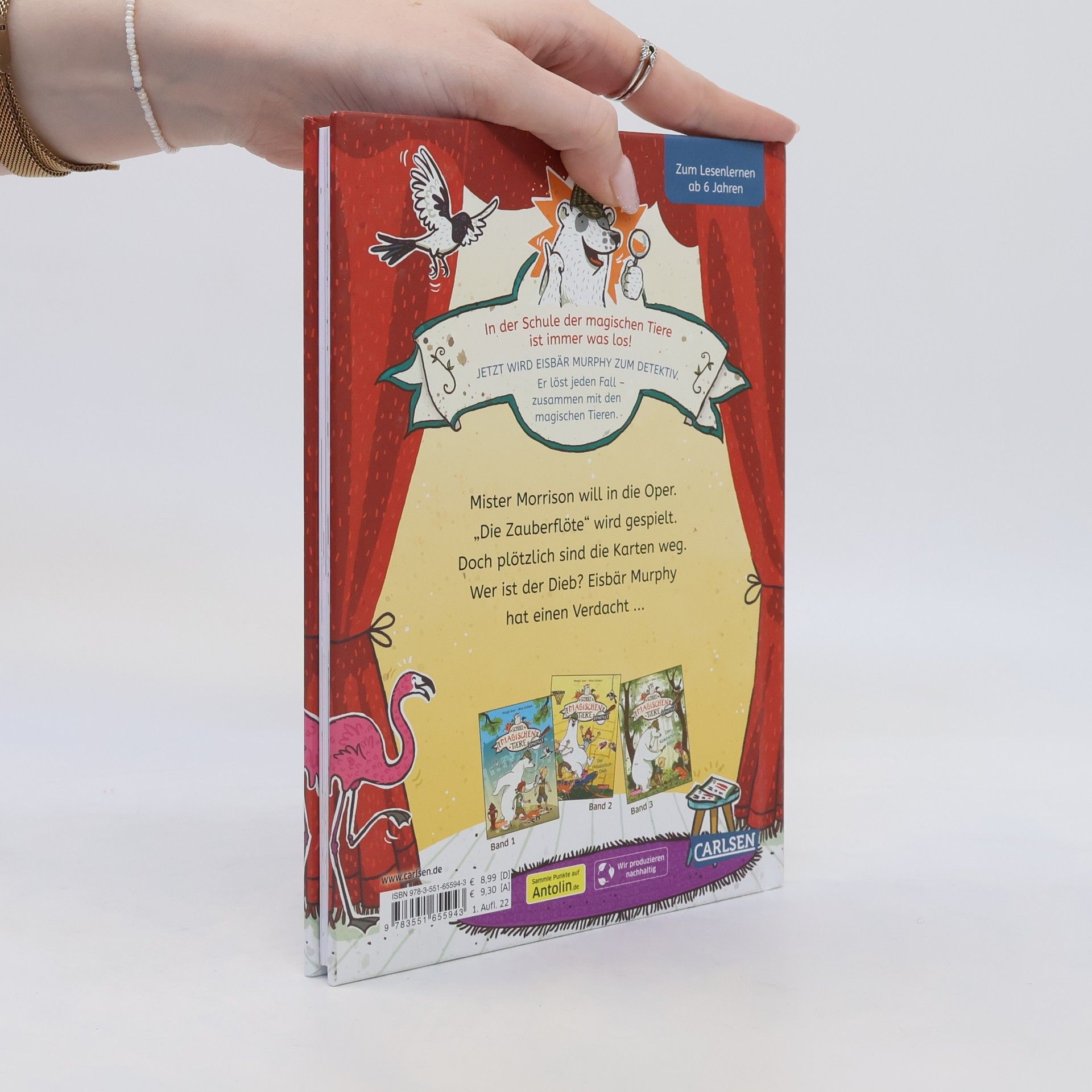 ***Die Schule der magischen Tiere – jetzt auch zum Lesenlernen!*** „Dein Spiegel“-Bestsellerreihe - ausgezeichnet mit dem SPELL (Siegener Preis für Erstleseliteratur) und dem LEIPZIGER LESEKOMPASS 2021   In der Schule der magischen Tiere ist immer was los! Jetzt wird Eisbär Murphy zum Detektiv. Er löst jeden Fall – zusammen mit den magischen Tieren!  BAND 4: Großer Frühjahrsputz in der magischen Zoohandlung! Während Eisbär Murphy saugt, macht Mr. Morrison sich schick. Er will mit Miss Cornfield in die Oper. „Die Zauberflöte“ wird gespielt. Doch – oh Schreck – die Karten sind weg! Wer ist der Dieb? Murphy und die magischen Tiere ermitteln ... Leichte Kinderkrimis mit den beliebten magischen Tieren: ab 6 Jahren  Ideal für Leseanfänger: mit extragroßer Schrift, Sinnumbrüchen, vielen bunten Bildern und Leserätsel – einfach magisch! „Kurze Sätze, viele Absätze und die fröhlichen Illustrationen von Nina Dulleck sorgen dafür, dass das Lesen Freude bereitet.“ Eselsohr