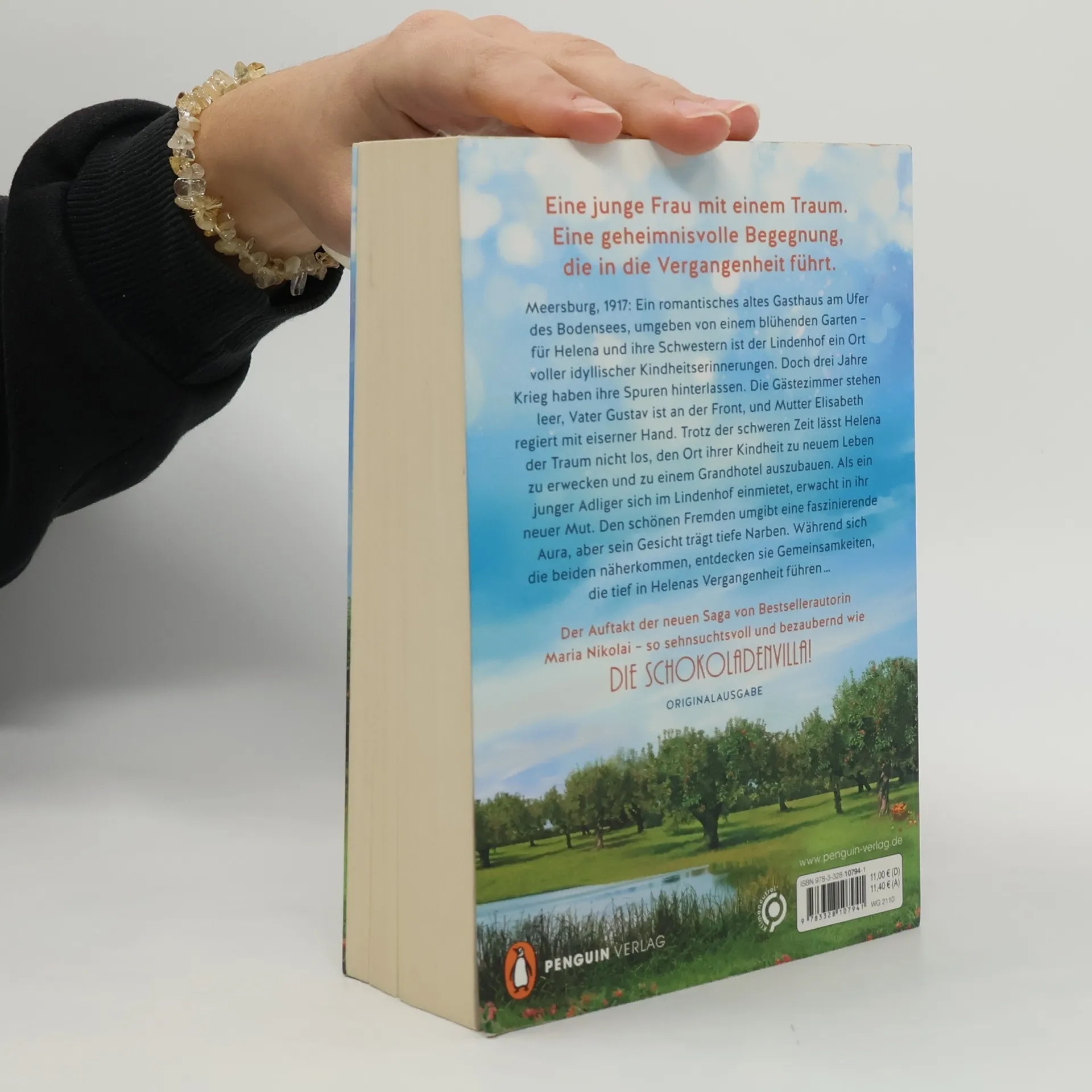 Nach »Die Schokoladenvilla«: Die neue historische Saga von Maria Nikolai! DREI SCHWESTERN DREI LEIDENSCHAFTEN EINE HEIMAT AM BODENSEE Meersburg, 1917: Ein romantisches altes Gasthaus am Ufer des Bodensees, umgeben von einem traumhaften Garten – für Helena Lindner und ihre Schwestern ist der Lindenhof ein Ort voller idyllischer Kindheitserinnerungen. Doch drei Jahre Krieg haben ihre Spuren hinterlassen. Die Gästezimmer stehen leer, Vater Gustav ist an der Front, und Mutter Elisabeth regiert mit eiserner Hand. Trotz der schweren Zeit lässt Helena der Traum nicht los, den Ort ihrer Kindheit zu neuem Leben zu erwecken und zu einem Grandhotel auszubauen. Als ein junger Adliger sich im Lindenhof einmietet, erwacht in ihr neuer Mut. Den schönen Fremden umgibt eine faszinierende Aura, aber sein Gesicht trägt tiefe Narben. Während sich die beiden näherkommen, entdecken sie Gemeinsamkeiten, die tief in Helenas Vergangenheit führen … Der Auftakt der neuen Saga von Bestsellerautorin Maria Nikolai – so genussvoll und bezaubernd wie »Die Schokoladenvilla«! In hochwertig veredelter Romance-Ausstattung, mit zwei leckeren Kuchenrezepten im Innenteil.