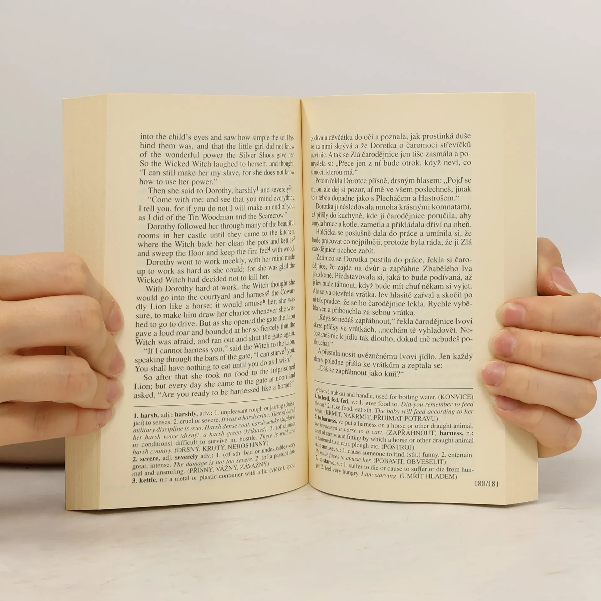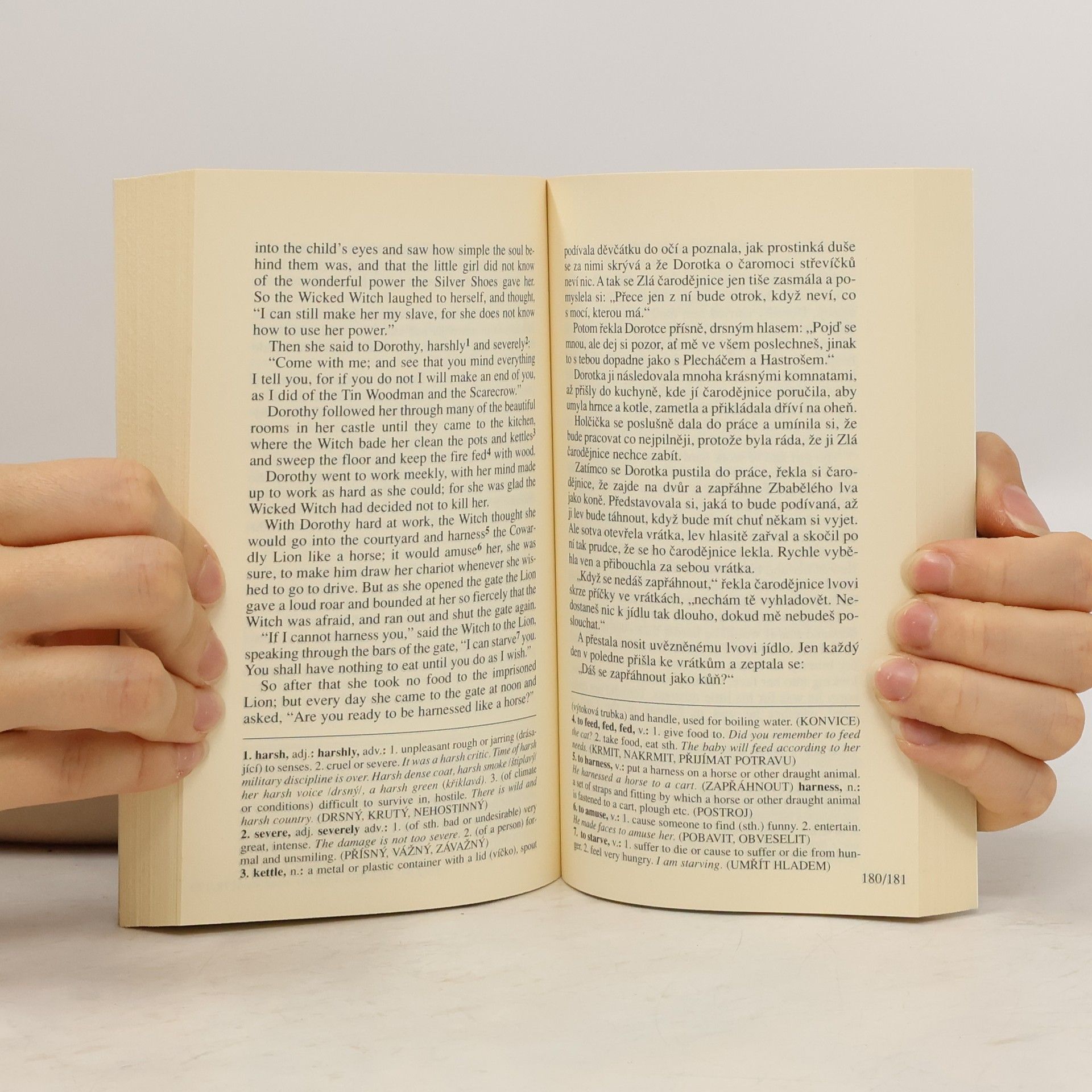 Slavný pohádkový příběh o putování malé Dorotky a jejich neobvyklých přátel za všemocným čarodějem Ozem do Smaragdového města, příběh, v němž jsou slovy autora zachovány zázraky a radost a vynechány bolesti a noční můry. Dvojjazyčné vydání s gramatickým a lexikálním komentářem pod čarou. Pro mírně pokročilé.