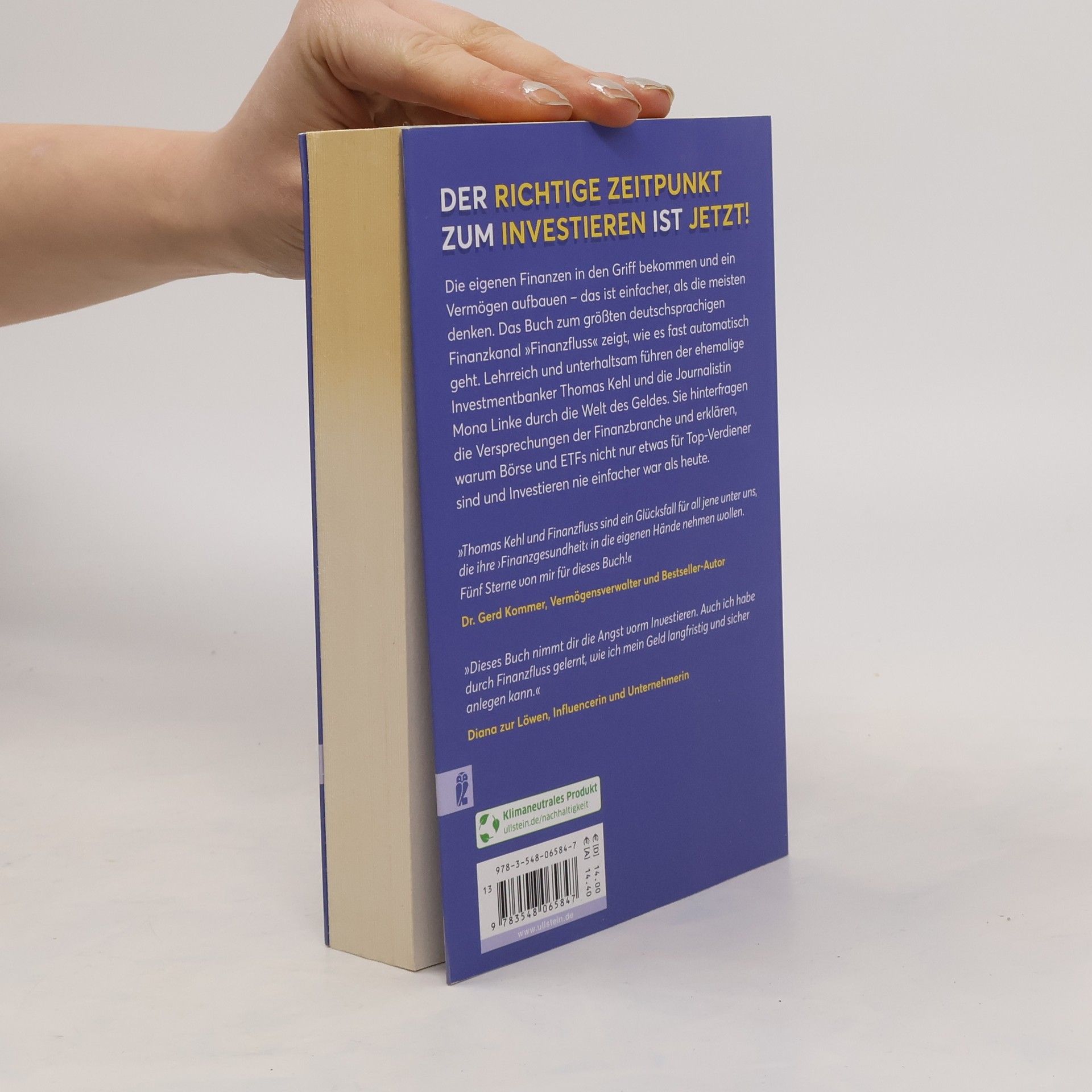 Lieber jetzt als nie! Ab sofort gibt es keine Ausreden mehr, den Vermögensaufbau aufzuschieben. Denn nie war es so einfach wie heute, sein Geld gewinnbringend anzulegen. Das Buch von den Machern des erfolgreichen YouTube-Kanals „Finanzfluss“ holt dich ab und gibt dir Impulse, Verantwortung für deine eigene finanzielle Situation zu übernehmen und Begeisterung für die persönliche Vermögensbildung zu entfachen. Der ehemalige Investmentbanker Thomas Kehl und die Journalistin Mona Linke erklären, wie du mithilfe von Aktien und ETFs passiv ein Vermögen aufbauen kannst und wie das genau funktioniert. Ein Empowerment-Programm und Schnellkurs in Sachen Vermögensaufbau für alle – verständlich, motivierend und vor allem wirksam!  „Thomas Kehl und Finanzfluss sind ein Glücksfall für all jene unter uns, die ihre “Finanzgesundheit„ in die eigenen Hände nehmen wollen. Fünf Sterne von mir für dieses Buch! “- Dr. Gerd Kommer, Vermögensverwalter und Bestseller-Autor  „Dieses Buch nimmt dir die Angst vorm Investieren. Auch ich habe durch Finanzfluss gelernt, wie ich mein Geld langfristig und sicher anlegen kann.“- Diana zur Löwen, Influencerin und Unternehmerin