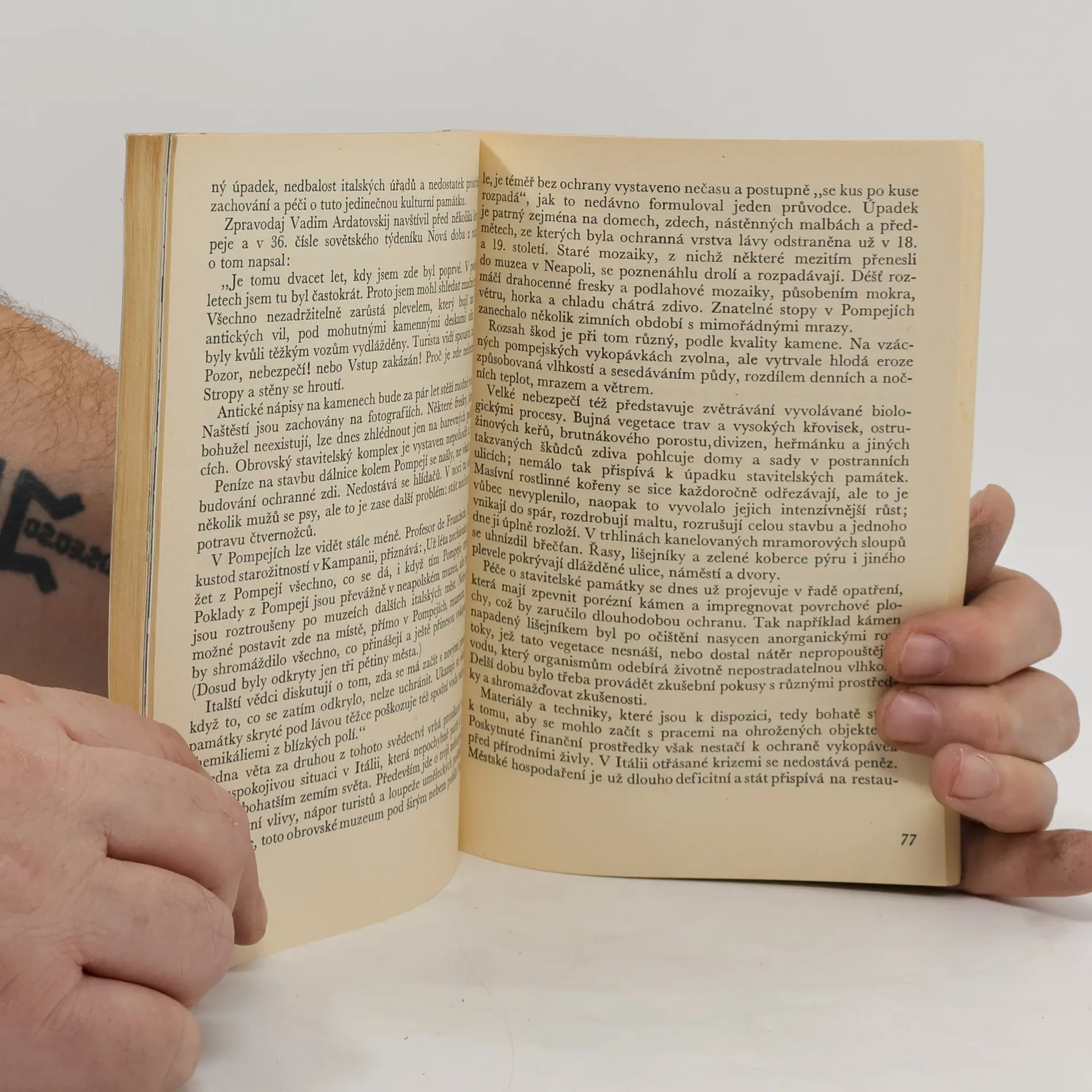 Kniha v devíti oddílech popisuje současné možnosti ohrožení historických uměleckých děl. Od přírodních katastrof, přes falza, teroristy, krádeže, vliv podnebí a houby či plísně a další. V knize je uvedena řada příkladů jednak z moderní ochrany a jednak z příčin nevratně poškozených památek.