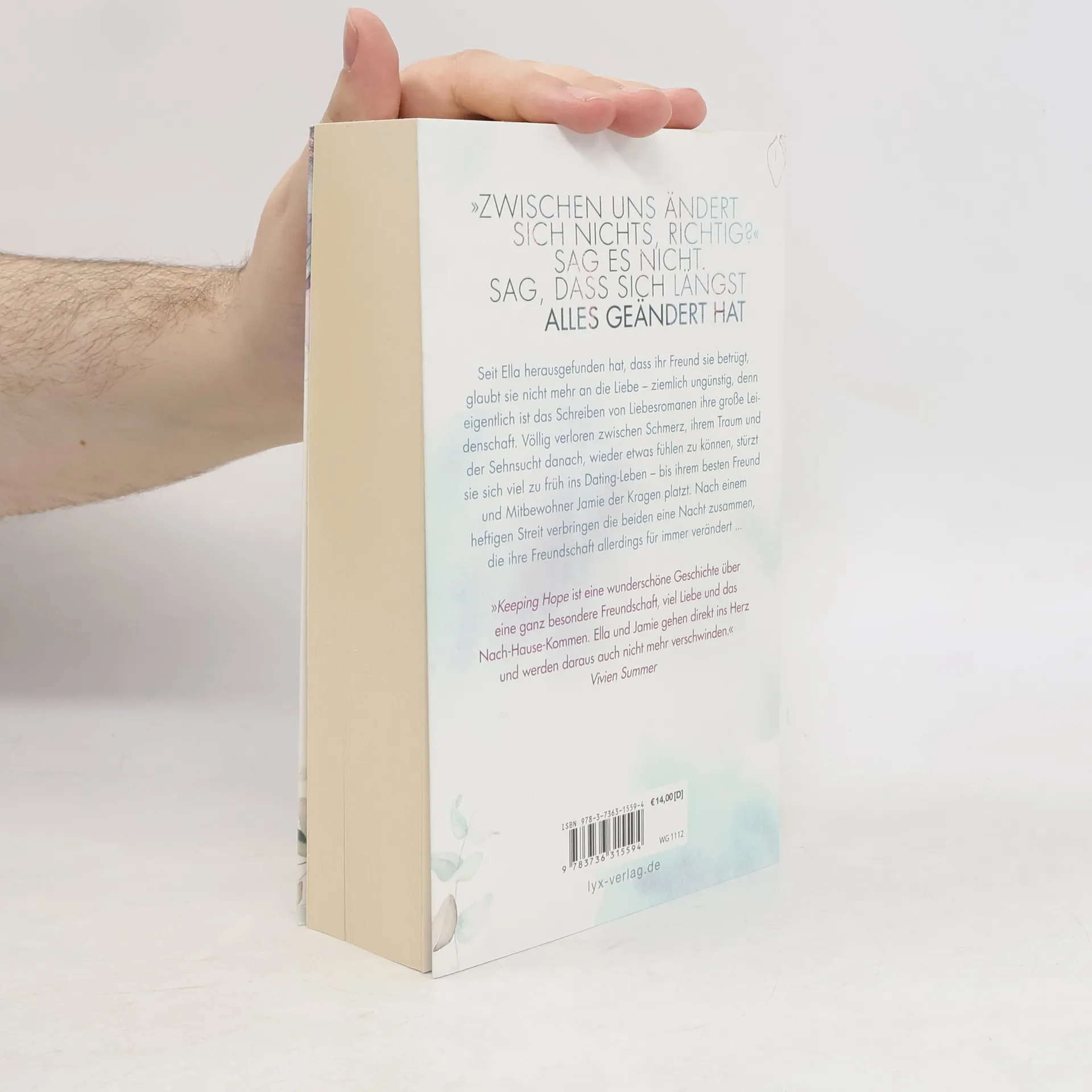 „Zwischen uns ändert sich nichts, richtig?“ Sag es nicht. Sag, dass sich längst alles geändert hat Seit Ella herausgefunden hat, dass ihr Freund sie betrügt, glaubt sie nicht mehr an die Liebe - ziemlich ungünstig, denn eigentlich ist das Schreiben von Liebesromanen ihre große Leidenschaft. Völlig verloren zwischen Schmerz, ihrem Traum und der Sehnsucht danach, wieder etwas fühlen zu können, stürzt sie sich viel zu früh ins Dating-Leben - bis ihrem besten Freund und Mitbewohner Jamie der Kragen platzt. Nach einem heftigen Streit verbringen die beiden eine Nacht zusammen, die ihre Freundschaft allerdings für immer verändert ... „Keeping Hope ist eine wunderschöne Geschichte über eine ganz besondere Freundschaft, viel Liebe und das Nach-Hause-Kommen. Ella und Jamie gehen direkt ins Herz und werden daraus auch nicht mehr verschwinden.“ VIVIEN SUMMER Abschlussband der New-Adult-Trilogie an der Faerfax University