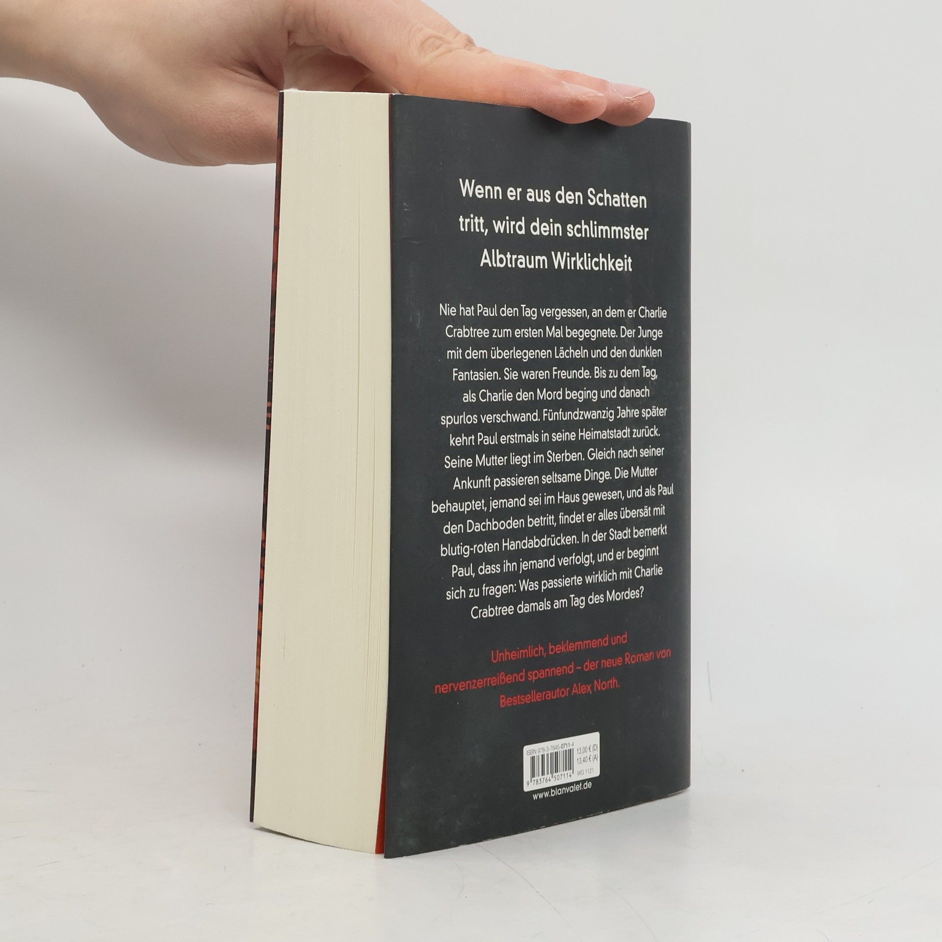 In den Schatten lauert das Böse ... Der neue fesselnde Spannungsroman von Alex North nach dem internationalen Bestsellererfolg DER KINDERFLÜSTERER! Niemals hat Paul den Tag vergessen, an dem er Charlie Crabtree in der Schule zum ersten Mal begegnete. Charlie mit seinem überlegenen Lächeln und den dunklen Fantasien, mit denen er Paul in seinen Bann zog. Sie waren Freunde. Bis zu dem Tag als Charlie den Mord beging und danach spurlos verschwand. Fünfundzwanzig Jahre später kehrt Paul erstmals in seine Heimatstadt zurück. Seine Mutter liegt im Sterben, die Pflegerin hat ihn alarmiert. Gleich nach seiner Ankunft passieren seltsame Dinge. Die Mutter behauptet, jemand sei im Haus gewesen, und als Paul den Dachboden betritt, findet er alles übersät mit blutig-roten Handabdrücken. In der Stadt bemerkt Paul, dass ihn jemand verfolgt, und er beginnt sich zu fragen: Was geschah damals mit Charlie Crabtree am Tag des Mordes? Unheimlich, beklemmend und nervenzerreißend spannend – der neue Roman von Alex North.