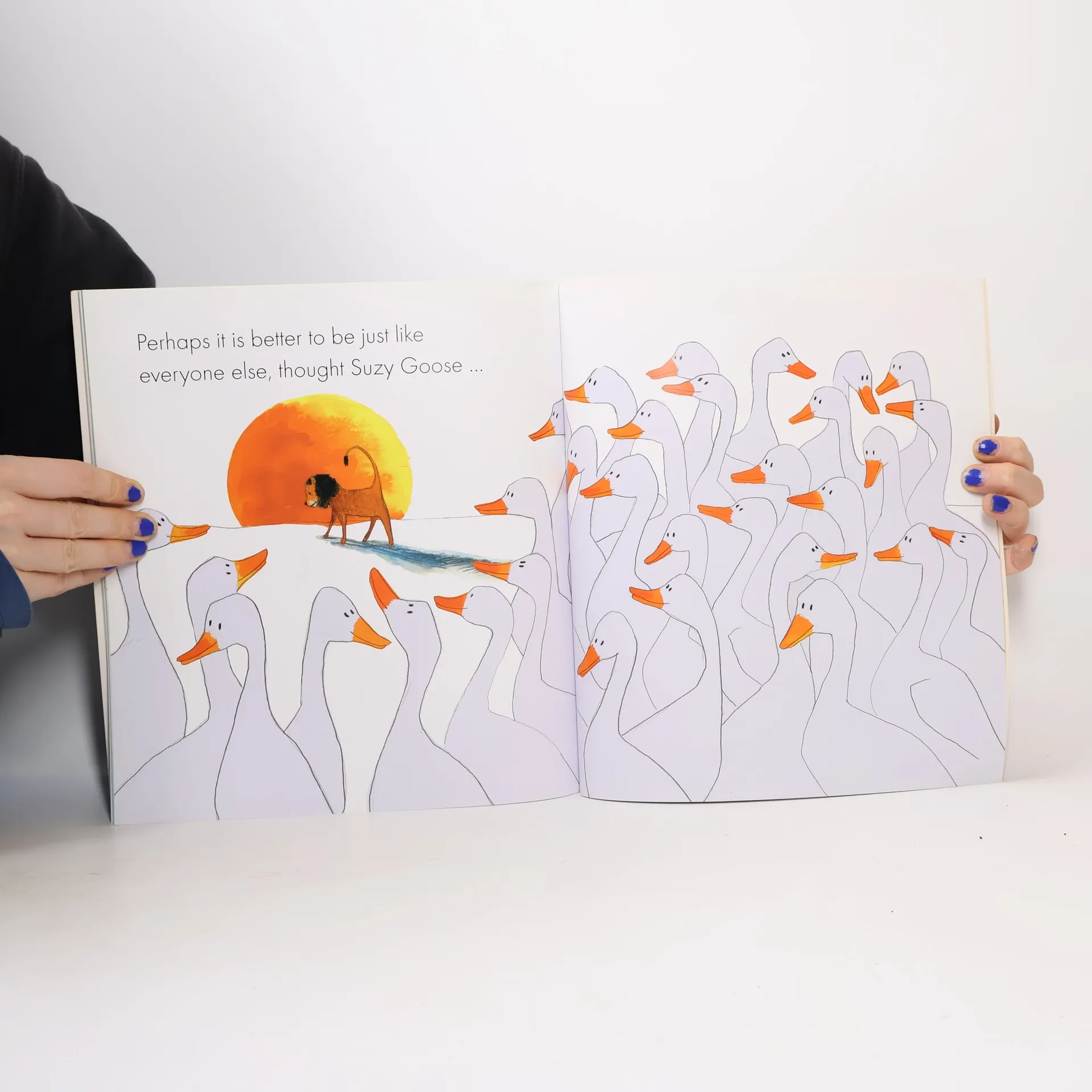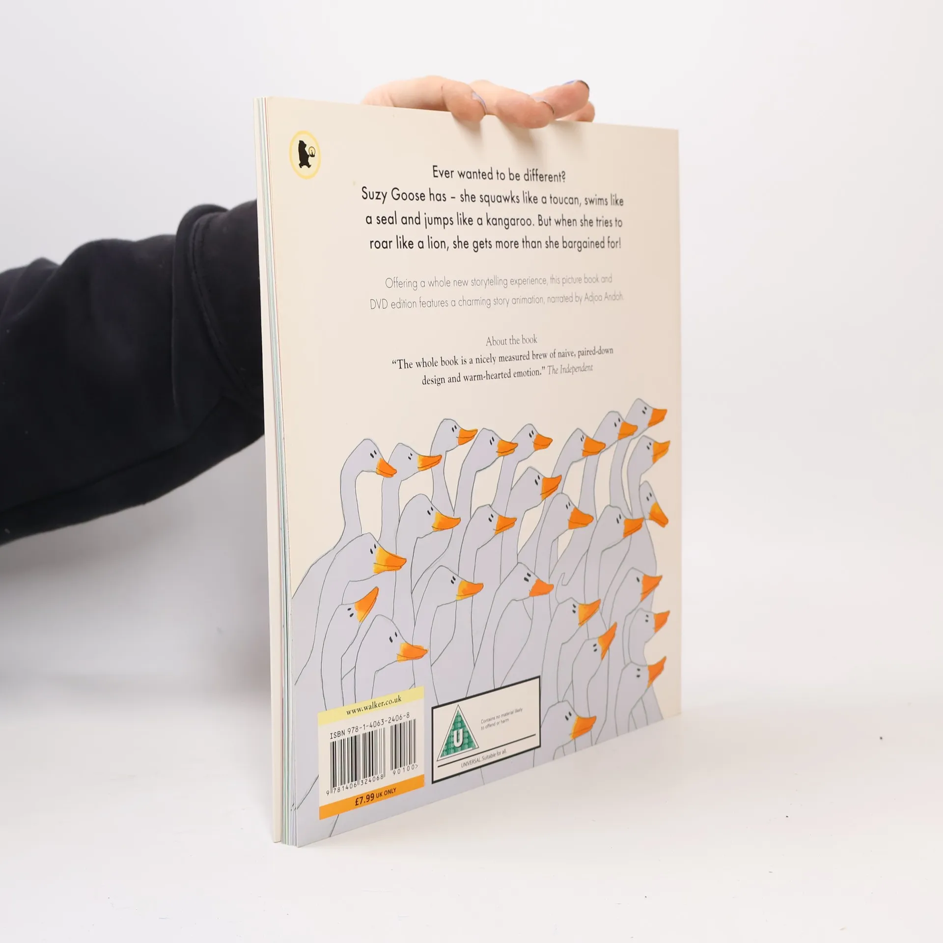 Suzy Goose is fed up with being just like the rest of the flock. She wants to be different - to flap like a bat, squawk like a toucan, slide like a penguin, jump like a kangaroo, and swim like a seal. But when she tries to roar like a lion she gets more than she bargained for.