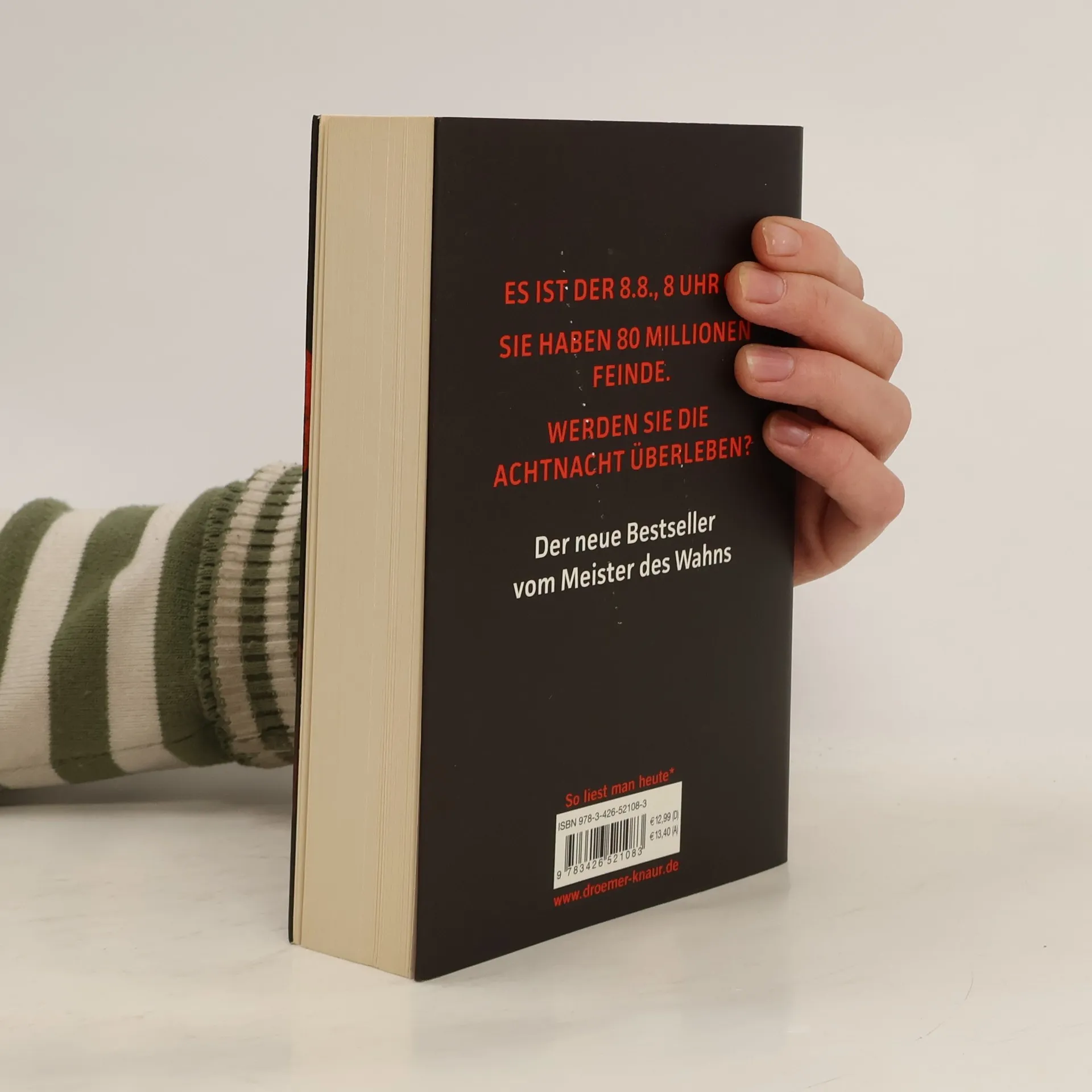 Ein furioser Thriller von Sebastian Fitzek, basierend auf einer großartigen Wahn-Idee: Was wäre, wenn du einen Menschen deiner Wahl straflos töten darfst? Es ist der 8. 8., acht Uhr acht. Du hast 80 Millionen Feinde. Wirst du die AchtNacht überleben? Stell dir vor, es gibt eine Todeslotterie. Du kannst den Namen eines verhassten Menschen in einen Lostopf werfen. In der „AchtNacht“, am 8. 8. jedes Jahres, wird aus allen Vorschlägen ein Name gezogen. Der Auserwählte ist eine AchtNacht lang geächtet, vogelfrei. Jeder in Deutschland darf ihn straffrei töten - und wird mit einem Kopfgeld von zehn Millionen Euro belohnt. Das ist kein Gedankenspiel. Sondern bitterer Ernst. Es ist ein massen-psychologisches Experiment, das aus dem Ruder lief. Und dein Name wurde gezogen! Ein rasanter Action-Thriller und Bestseller von Sebastian Fitzek, dem „Meister des Wahns“ – exklusiv im Taschenbuch.