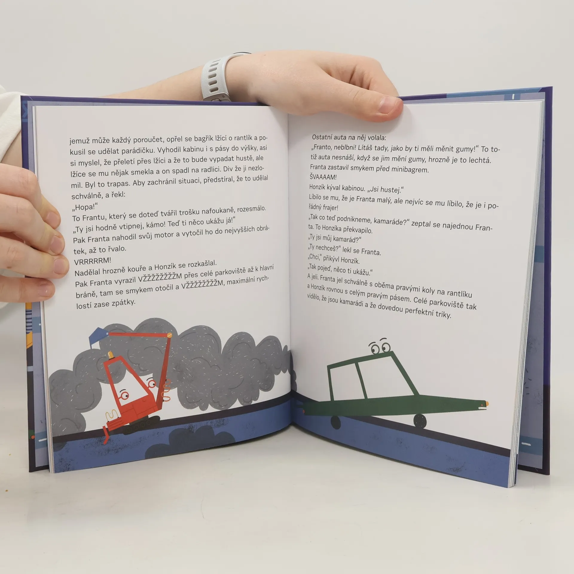 Elektrický minibagr Honzík je nespokojený s tím, jaký je. Touží vyniknout mezi ostatními bagry. Příběh z prostředí staveniště o tom, že každý má své místo a dovede něco jiného. Příběh o bagříku Honzíkovi a sporťáku Frantovi, dvou malinkých kamarádech, které mezi obrovskými bagry a náklaďáky na stavbě kdekdo přehlédl. Nikoho ani nenapadlo, že by zrovna tihle špuntové mohli někdy s něčím pořádným pomoct. Jenže občas přicházejí chvíle, kdy velké silné stroje dojedou na konec svých možností, a malí, hbití a rychlí kamarádi jim můžou zachránit život. Nakladatelská anotace.