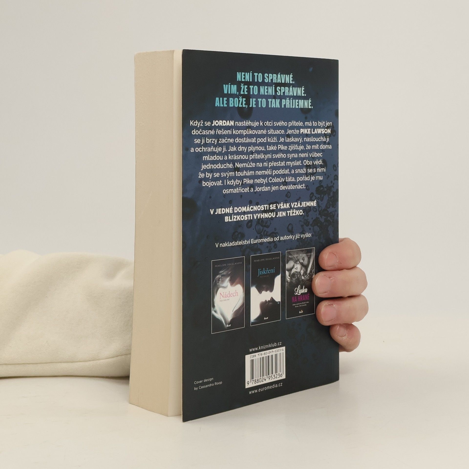 Romance od americké autorky vypráví příběh milé Jordan, která se ve svém životě snaží dělat jen správné věci. Její rodina je jí totiž odstrašujícím příkladem. Je život ale opravdu jenom černobílý? Když se Jordan nastěhuje k otci svého přítele, má to být jen dočasné řešení komplikované situace. Jenže Pike Lawson se jí brzy začne dostávat pod kůži. Oba vědí, že by se svým touhám neměli poddat, a snaží se s nimi bojovat. I kdyby to nebyl Coleův táta, pořád je mu osmatřicet a jí jen devatenáct. V jedné domácnosti se však vzájemné blízkosti vyhnou jen těžko. Nakladatelská anotace.