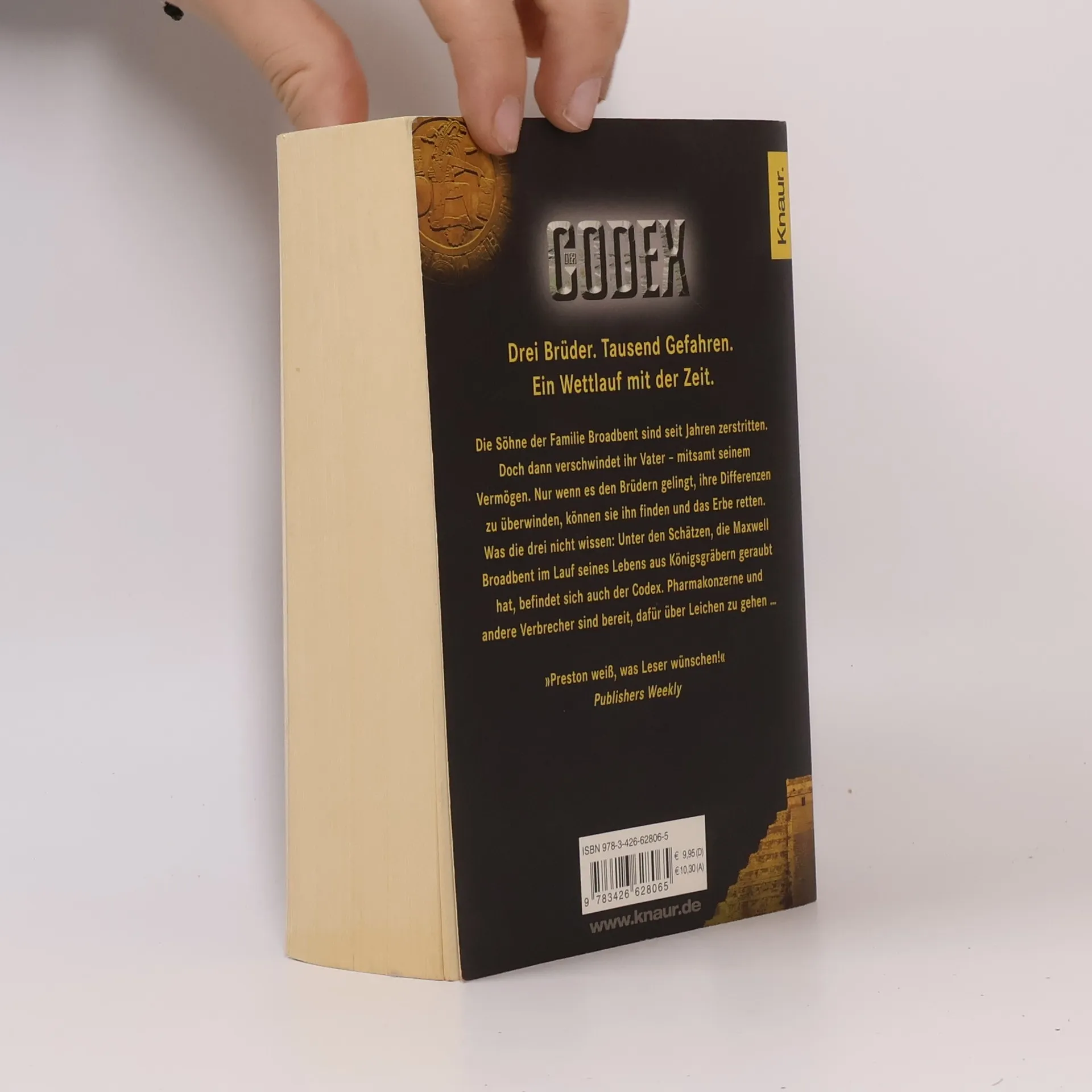 Drei Brüder. Tausend Gefahren. Ein Wettlauf mit der Zeit.Die Söhne der Familie Broadbent sind seit Jahren zerstritten. Doch dann verschwindet ihr Vater – mitsamt seinem Vermögen. Nur wenn es den Brüdern gelingt, ihre Differenzen zu überwinden, können sie ihn finden und das Erbe retten. Was die drei nicht wissen: Unter den Schätzen, die Maxwell Broadbent im Lauf seines Lebens aus Königsgräbern geraubt hat, befindet sich auch der ›Codex‹. Pharmakonzerne und andere Verbrecher sind bereit, dafür über Leichen zu gehen ...Der Codex von Douglas Preston: Spannung pur!