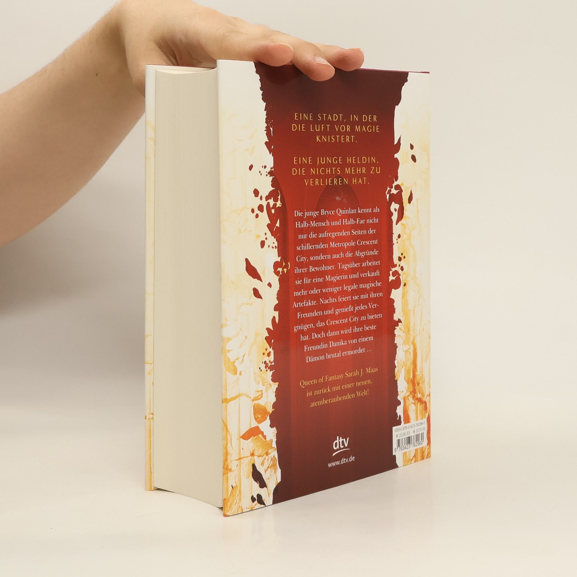 Der Auftakt zur neuen Reihe von Bestsellerautorin Sarah J. Maas! Magie, Musik – und tödliche Gefahren: Die junge Bryce Quinlan, Halb-Fae und Halb-Mensch, genießt jedes Vergnügen, das Crescent Citys Nächte zu bieten haben. Doch dann wird ihre beste Freundin Danika von einem Dämon brutal ermordet – und für Bryce bricht die ganze Welt zusammen. Als der Dämon zwei Jahre später erneut zuschlägt, wird Bryce gegen ihren Willen in die Ermittlungen hineingezogen und muss mit Hunt Athalar zusammenarbeiten. Einem Engel, der als gewissenloser Auftragsmörder berüchtigt ist, – und mit dem sich Bryce auf ein Spiel mit dem Feuer einlässt. Während die beiden der Spur des Dämons tief in die Unterwelt der Stadt folgen, entdecken sie eine bösartige Macht, die ganz Crescent City in Schutt und Asche legen könnte … Kennen Sie bereits die weiteren Serien von Sarah J. Maas bei dtv? »Das Reich der sieben Höfe« »Throne of Glass«