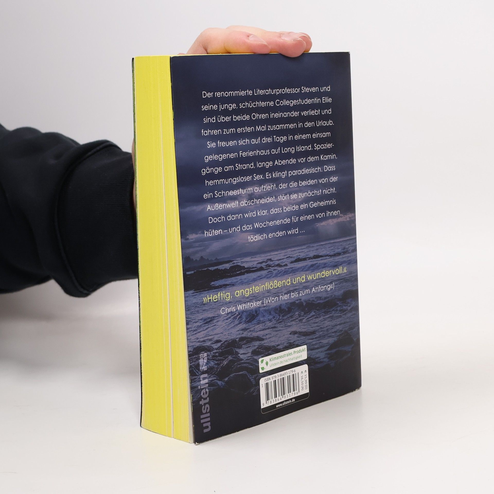 Es sollte der perfekte romantische Wochenendtrip sein. Doch nur einer wird ihn überleben. Der renommierte Literaturprofessor Steven und seine junge, schüchterne Collegestudentin Ellie sind über beide Ohren ineinander verliebt und fahren zum ersten Mal zusammen in Urlaub. Sie freuen sich auf drei Tage in einem einsam gelegenen Ferienhaus auf Long Island. Spaziergänge am Strand, lange Abende vor dem Kamin, hemmungsloser Sex. Es klingt paradiesisch. Dass ein Schneesturm aufzieht, der die beiden von der Außenwelt abschneidet, stört sie zunächst nicht. Doch dann wird klar, dass beide ein Geheimnis hüten – und das Wochenende für einen von ihnen tödlich enden wird … »Heftig, angsteinflößend, kühn und wundervoll. Legen Sie für dieses Buch alles zur Seite!« Chris Whitaker