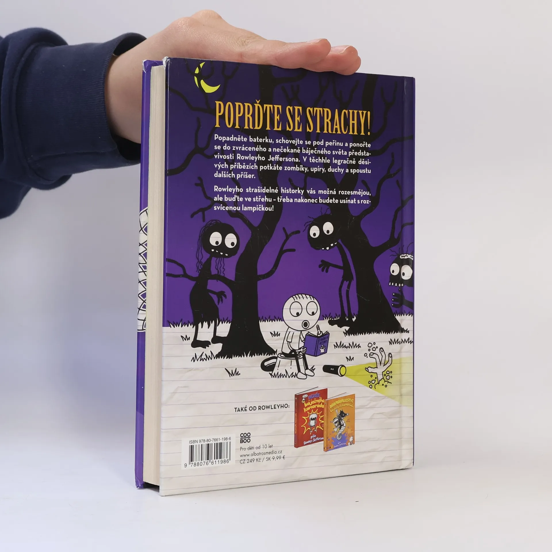 V řadě již třetí díl úspěšné série Deník báječného kamaráda vyprávěný z pohledu Rowleyho Jeffersona. Popadněte baterku, vlezte pod přikrývku a ponořte se do zkrouceného, nečekaně veselého světa fantazie Rowleyho Jeffersona. V těchto komicky děsivých příbězích se setkáte se zombie, upíry, duchy a mnohem více. Rowleyho strašidelné příběhy vás mohou rozesmát, ale pozor, abyste nakonec nemuseli spát s rozsvícenými světly!