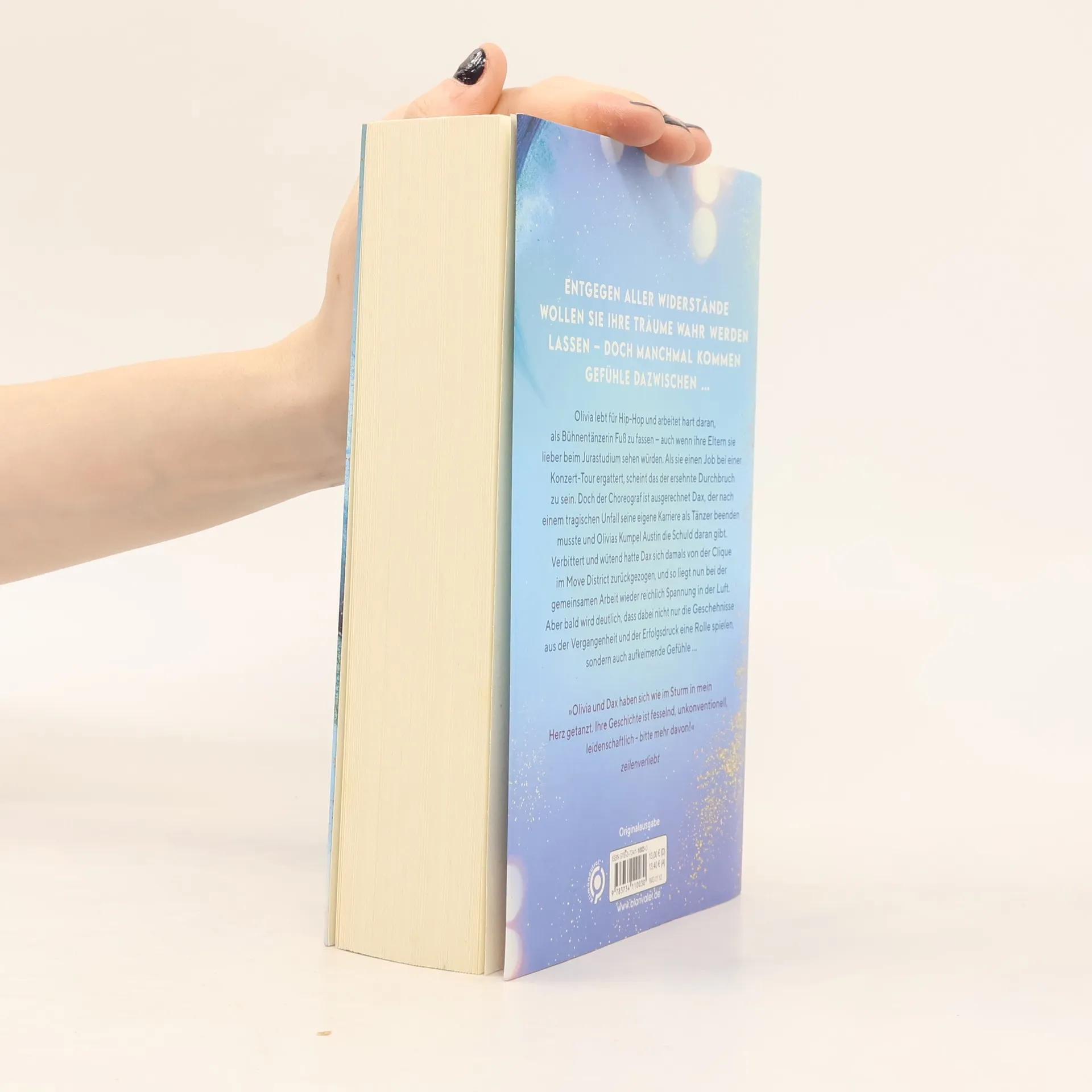 Olivia und Dax: Entgegen aller Widerstände wollen sie ihre Träume wahr werden lassen – doch manchmal kommen Gefühle dazwischen. Olivia lebt für Hip-Hop und arbeitet hart daran, als Bühnentänzerin Fuß zu fassen – auch wenn ihre Eltern sie lieber beim Jurastudium sehen würden. Als sie einen Job bei einer Konzert-Tour ergattert, scheint das der ersehnte Durchbruch zu sein. Doch der Choreograf ist ausgerechnet Dax, der nach einem tragischen Unfall seine eigene Karriere als Tänzer beenden musste und Olivias Kumpel Austin die Schuld daran gibt. Verbittert und wütend hatte Dax sich damals von der Clique im Move District zurückgezogen, und so liegt nun bei der gemeinsamen Arbeit wieder reichlich Spannung in der Luft. Doch bald wird deutlich, dass dabei nicht nur die Geschehnisse aus der Vergangenheit und der Erfolgsdruck eine Rolle spielen, sondern auch aufkeimende Gefühle … Mit Playlist im Buch! Die »Move District«-Reihe bei Blanvalet: Band 1: Dance into my World Band 2: Step into my Heart Band 3: Fly into my Soul Alle Bände können auch unabhängig voneinander gelesen werden.