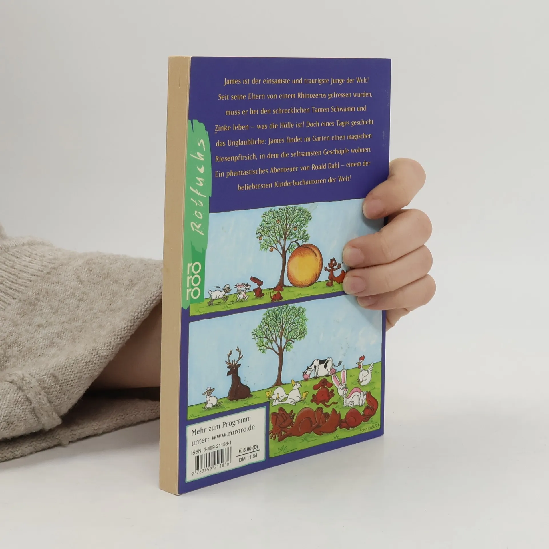 James ist der einsamste und traurigste Junge der Welt! Seit seine Eltern von einem Rhinozeros gefressen wurden, muss er bei den schrecklichen Tanten Schwamm und Zinke leben - was die Hölle ist! Doch eines Tages geschieht das Unglaubliche: James findet im Garten einen magischen Riesenpfirsich, in dem die seltsamsten Geschöpfe wohnen. Ein phantastisches Abenteuer von Roald Dahl - einem der beliebtesten Kinderbuchautoren der Welt!