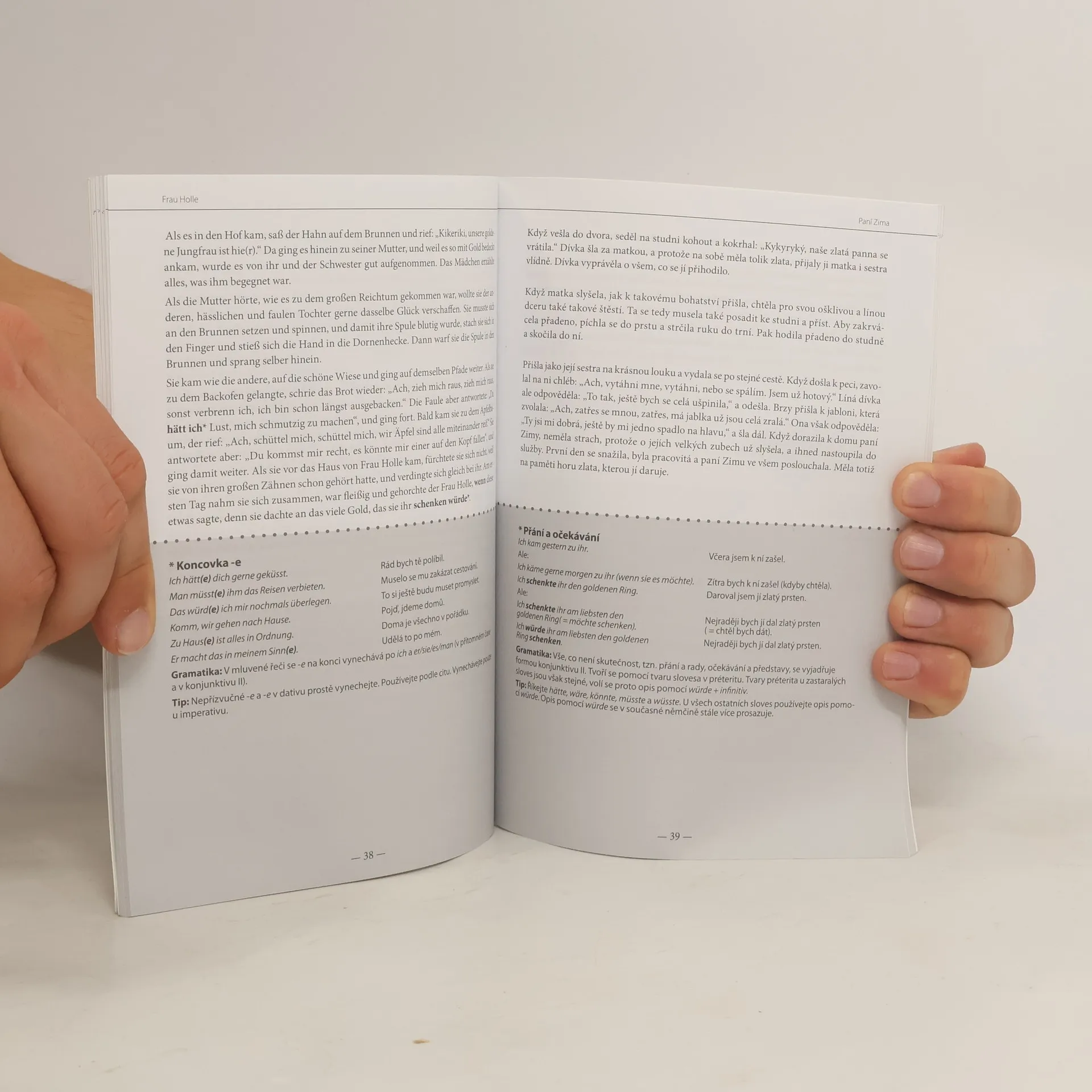 Kniha je určena pokročilým studentům němčiny, kteří si chtějí zábavným způsobem rozšířit své znalosti německého jazyka. Obsahuje výběr šesti oblíbených pohádek bratří Grimmů: Brémští muzikanti, Zlatá husa, Šípková Růženka, Paní Zima, Jeníček a Mařenka, Sněhurka. Může být užitečnou pomůckou pro zpestření výuky jak při samostudiu, tak v hodinách s lektorem.