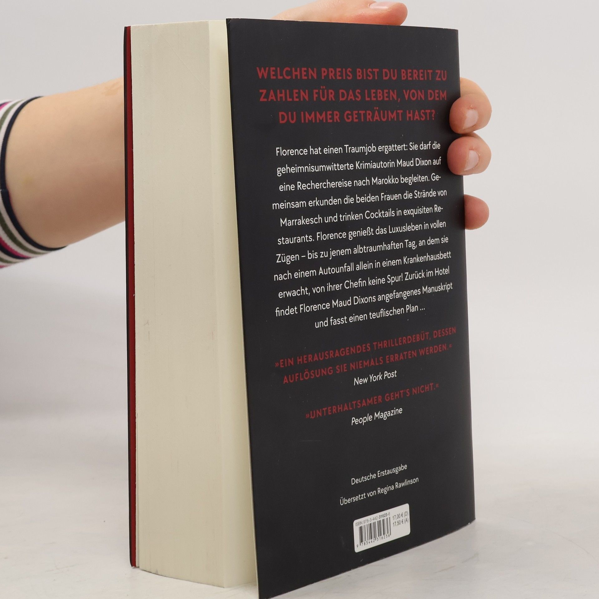Florence Darrow, angestellt bei einem großen New Yorker Verlag, würde alles darum geben, mit ihren eigenen Texten Erfolg zu haben. Als sie von der geheimnisumwitterten Bestsellerautorin Maud Dixon als Assistentin engagiert wird, scheint sie ihrem Traum ein großes Stück näher gekommen zu sein. Die eher schüchterne Florence bewundert die ebenso zielstrebige wie mondäne Frau, die ihre wahre Identität geheimhält. Florence darf die Krimiautorin sogar auf eine Recherchereise nach Marokko begleiten und betritt eine faszinierende, exotische Welt. Gemeinsam erkunden die beiden Frauen die Märkte von Marrakesch und speisen in exquisiten Restaurants. Bis zu jenem verhängnisvollen Abend, an dem Maud Dixon plötzlich verschwindet – und Florence einen teuflischen Plan fasst …