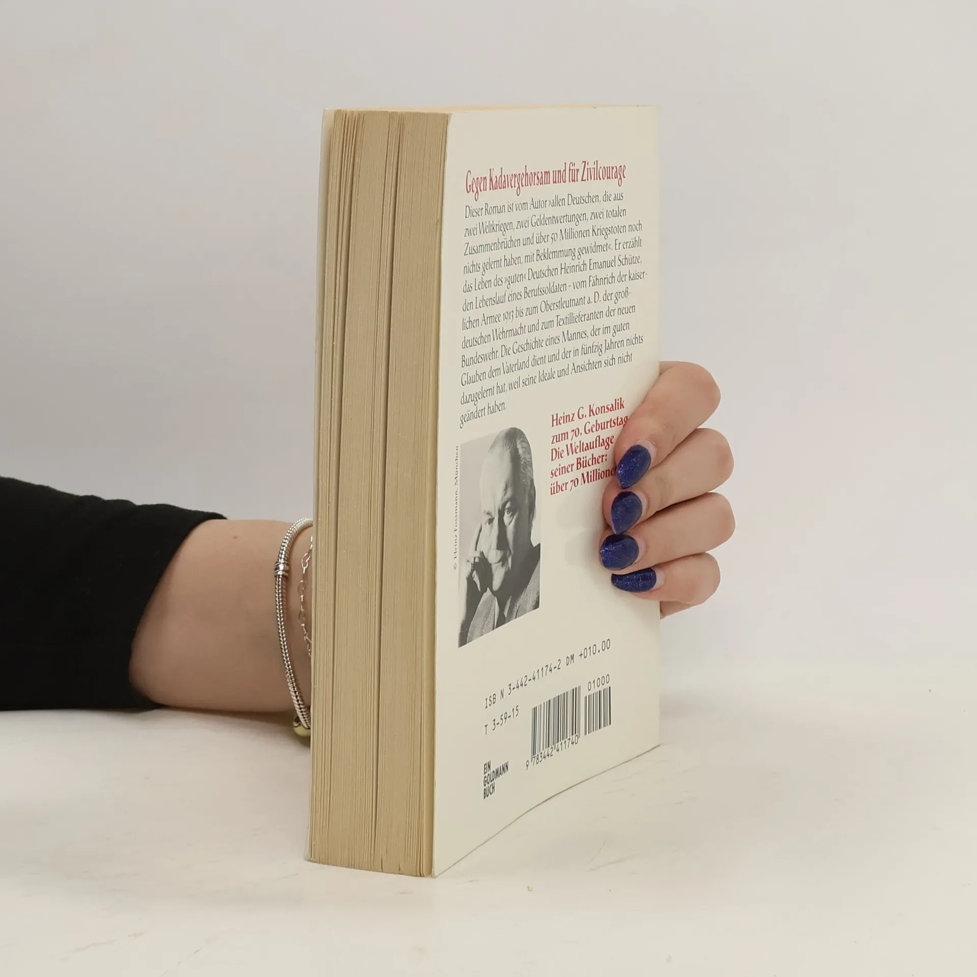 Dieser Roman ist vom Autor “allen Deutschen, die aus zwei Weltkriegen, zwei Geldentwertungen, zwei totalen Zusammenbrüchen und über 50 Millionen Kriegstoten noch nichts gelernt haben, mit Beklemmung gewidmet”. Er erzählt das Leben des “guten” Deutschen Heinrich Emanuel Schütze, den Lebenslauf eines Berufssoldaten, vom Fähnrich der kaiserlichen Armee 1913, bis zum Oberstleutnant a. D. der großdeutschen Wehrmacht und zum Textillieferanten der neuen Bundeswehr. Die Geschichte eines Mannes, der im guten Glauben dem Vaterland dient und der in fünfzig Jahren nichts dazugelernt hat, weil seine Ideale und Ansichten sich nicht geändert haben.