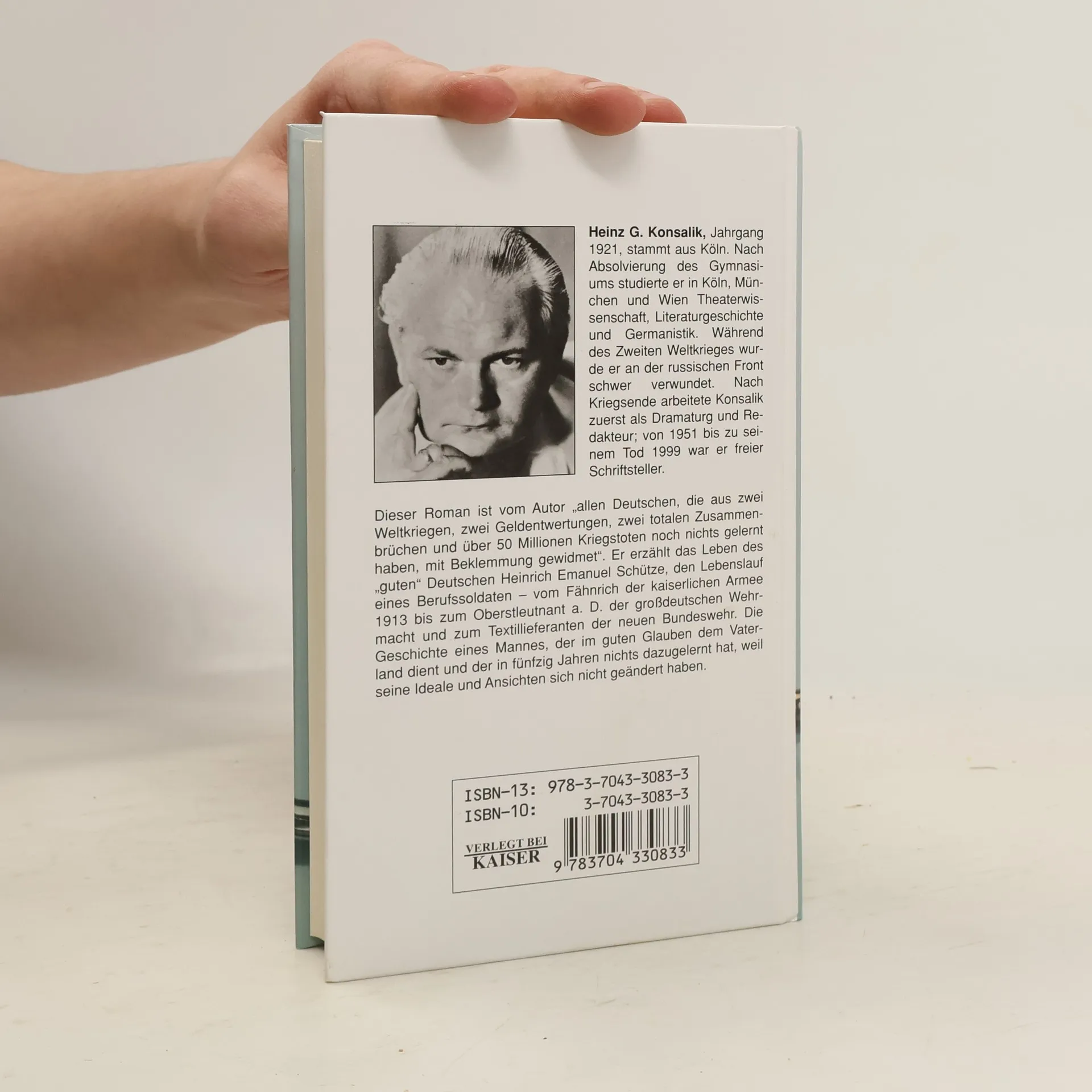Dieser Roman ist vom Autor “allen Deutschen, die aus zwei Weltkriegen, zwei Geldentwertungen, zwei totalen Zusammenbrüchen und über 50 Millionen Kriegstoten noch nichts gelernt haben, mit Beklemmung gewidmet”. Er erzählt das Leben des “guten” Deutschen Heinrich Emanuel Schütze, den Lebenslauf eines Berufssoldaten, vom Fähnrich der kaiserlichen Armee 1913, bis zum Oberstleutnant a. D. der großdeutschen Wehrmacht und zum Textillieferanten der neuen Bundeswehr. Die Geschichte eines Mannes, der im guten Glauben dem Vaterland dient und der in fünfzig Jahren nichts dazugelernt hat, weil seine Ideale und Ansichten sich nicht geändert haben.
