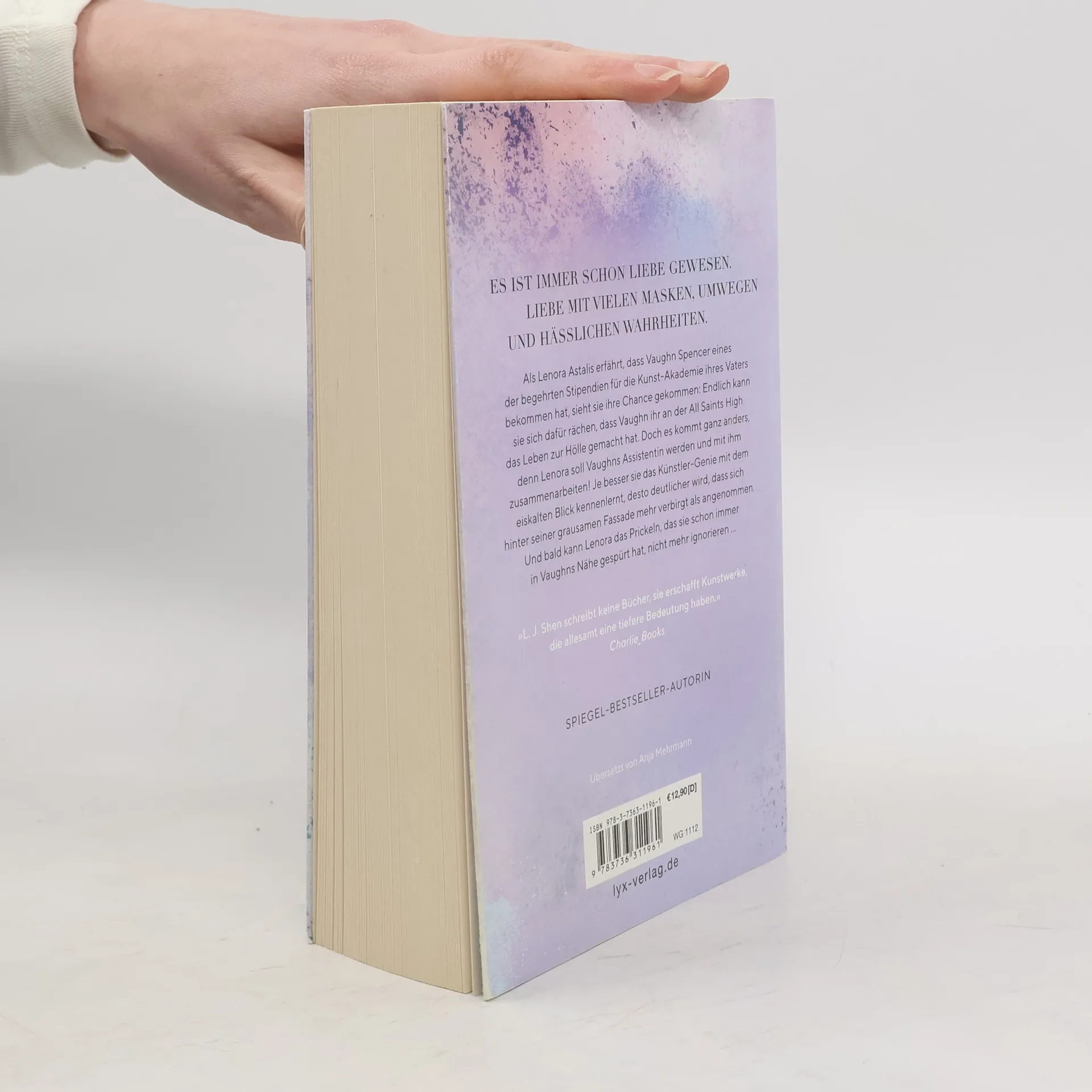 Es ist immer schon Liebe gewesen. Liebe mit vielen Masken, Umwegen und hässlichen Wahrheiten. Als Lenora Astalis erfährt, dass Vaughn Spencer eines der begehrten Stipendien für die Kunst-Akademie ihres Vaters bekommen hat, sieht sie ihre Chance gekommen: Endlich kann sie sich dafür rächen, dass Vaughn ihr an der All Saints High das Leben zur Hölle gemacht hat. Doch es kommt ganz anders, denn Lenora soll Vaughns Assistentin werden und mit ihm zusammenarbeiten! Je besser sie das Künstler-Genie mit dem eiskalten Blick kennenlernt, desto deutlicher wird, dass sich hinter seiner grausamen Fassade mehr verbirgt als angenommen. Und bald kann Lenora das Prickeln, das sie schon immer in Vaughns Nähe gespürt hat, nicht mehr ignorieren ... „L. J. Shen schreibt keine Bücher, sie erschafft Kunstwerke, die allesamt eine tiefere Bedeutung haben.“ CHARLIE BOOKS Band 3 der ALL-SAINTS-HIGH-Reihe von SPIEGEL-Bestseller-Autorin L. J. Shen! Die ALL-SAINTS-HIGH-Reihe: 1. Die Prinzessin2. Der Rebell3. Der Verlorene