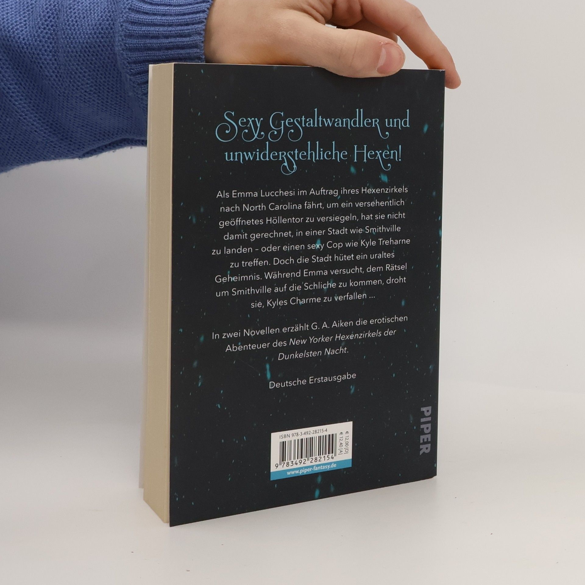 Als Emma Lucchesi im Auftrag ihres Hexenzirkels nach North Carolina fährt, um ein versehentlich geöffnetes Höllentor zu versiegeln, hat sie nicht damit gerechnet, in einer Stadt wie Smithville zu landen – oder einen sexy Cop wie Kyle Treharne zu treffen. Doch irgendetwas ist in Smithville anders. Warum sind alle Menschen, denen Emma dort begegnet, groß und gut aussehend? Und warum lässt Kyle sie nicht mehr aus den Augen, seit sie in Smithville aufgetaucht ist? Als Emma herausfindet, dass Smithville das Zuhause einer Vielzahl von Gestaltwandlern ist, ist sie Kyles Charme längst verfallen ... In zwei Novellen erzählt G. A. Aiken die erotischen Abenteuer des New Yorker Hexenzirkels der Dunkelsten Nacht.