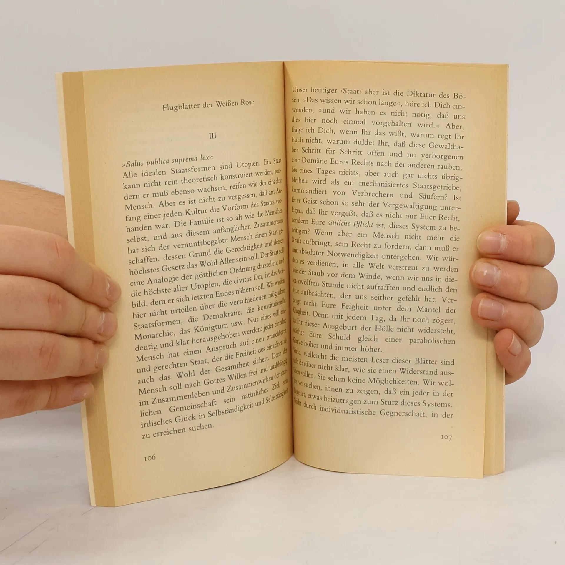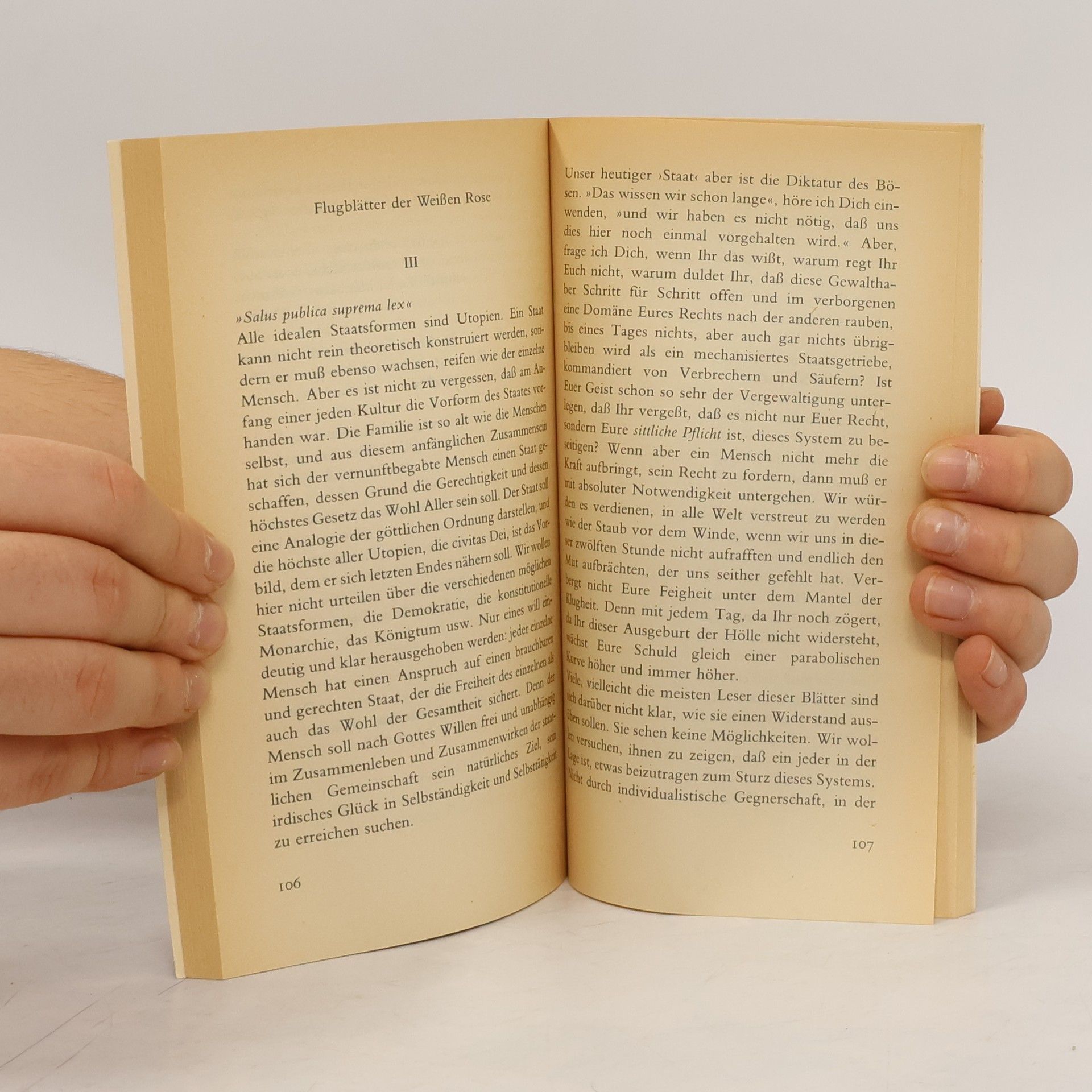 Die 'Weiße Rose' wurde zum Symbol einer Aktion, mit der einige Münchner Studenten zum Widerstand gegen die Diktatur Hitlers aufriefen. Sie bezahlten dafür mit ihrem Leben. Inge Scholl, die Schwester der Geschwister Hans und Sophiel, die unter den Hingerichteten waren, erzählt mit Hilfe von geretteten Dokumenten die Vorgeschichte und den Verlauf der Bewegung