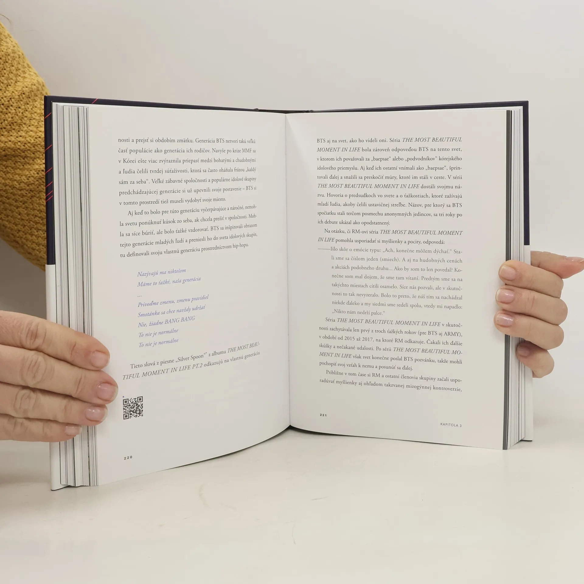 Príbehy, ktoré presahujú všetko, čo už o BTS viete. Prvé oficiálne rozprávanie o členoch BTS a ich dospievaní, ´The Most Beautiful Moment in Life´. Napísané počas troch rokov po rozhovoroch s novinárom Myeongseokom Kangom, v ktorých sa BTS podelili o osobné príbehy zo zákulisia ich doterajšej cesty.