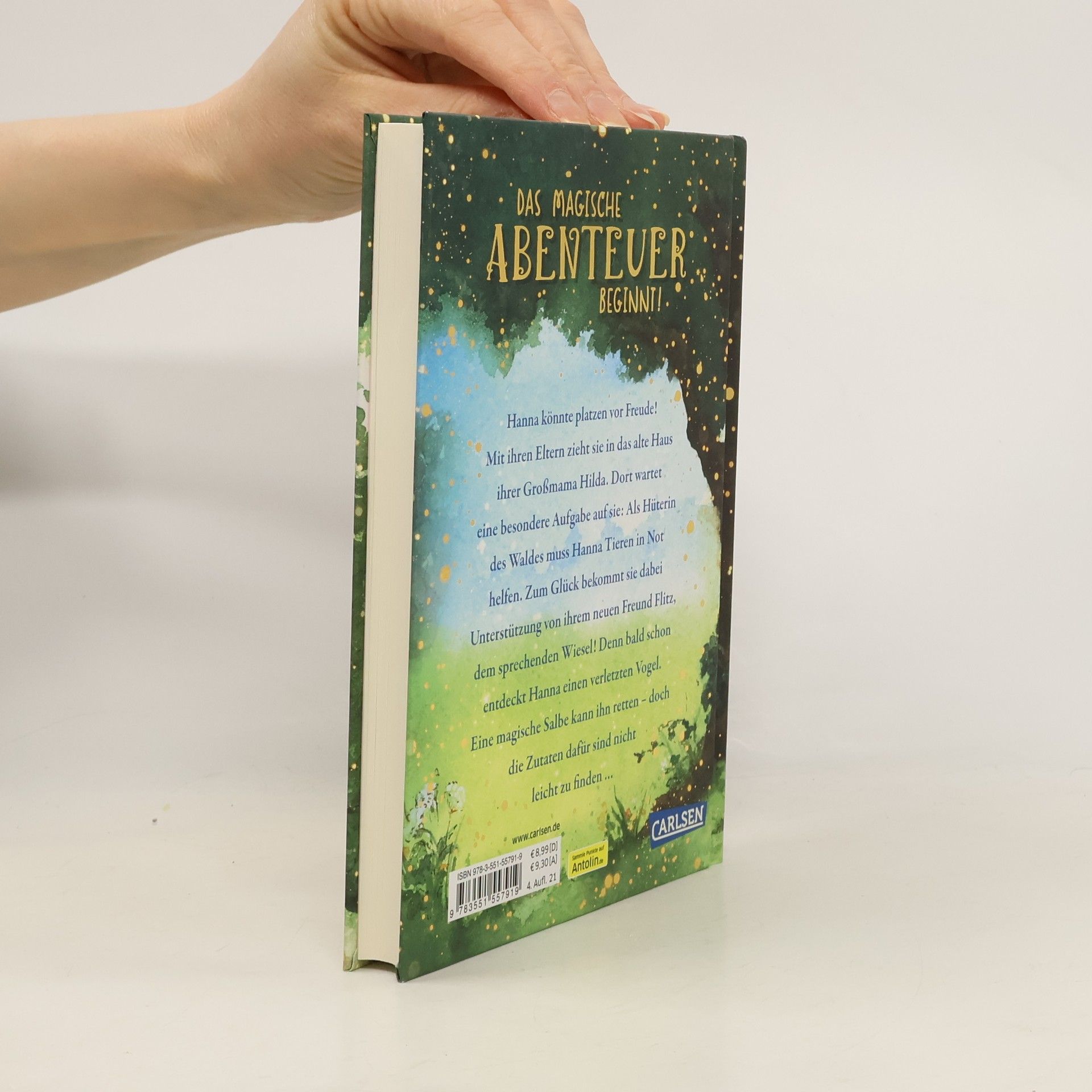Das magische Abenteuer kann beginnen! Hanna könnte platzen vor Freude! Mit ihren Eltern zieht sie in das alte Haus am Waldrand, das einst Oma Hilda gehörte. Dort wartet eine ganz besondere Aufgabe auf sie: Als Hüterin des Waldes liegt es an Hanna, für die Tiere zu sorgen, wann immer sie Hilfe brauchen. Schon bald entdeckt sie im Gras einen verletzten Vogel. Um ihn wieder gesund zu machen, muss sie eine magische Tinktur zusammenmischen. Doch wo findet sie nur all die Zutaten dafür? Zum Glück bekommt sie Unterstützung von Flitz. Das Wiesel hat nicht nur stets einen frechen Spruch auf den Lippen, sondern erweist sich auch als wahrer Freund. Eine Wohlfühl-Reihe für alle Fans von »Eulenzauber« und »Sternenschweif«! Ausgezeichnet mit der Kieler Lesesprotte 2022.  Band 1: Hannas GeheimnisBand 2: Häschen in NotBand 3: Theater mit Familie IgelBand 4: Spuren im Schnee Band 5 erscheint im Frühjahr 2023