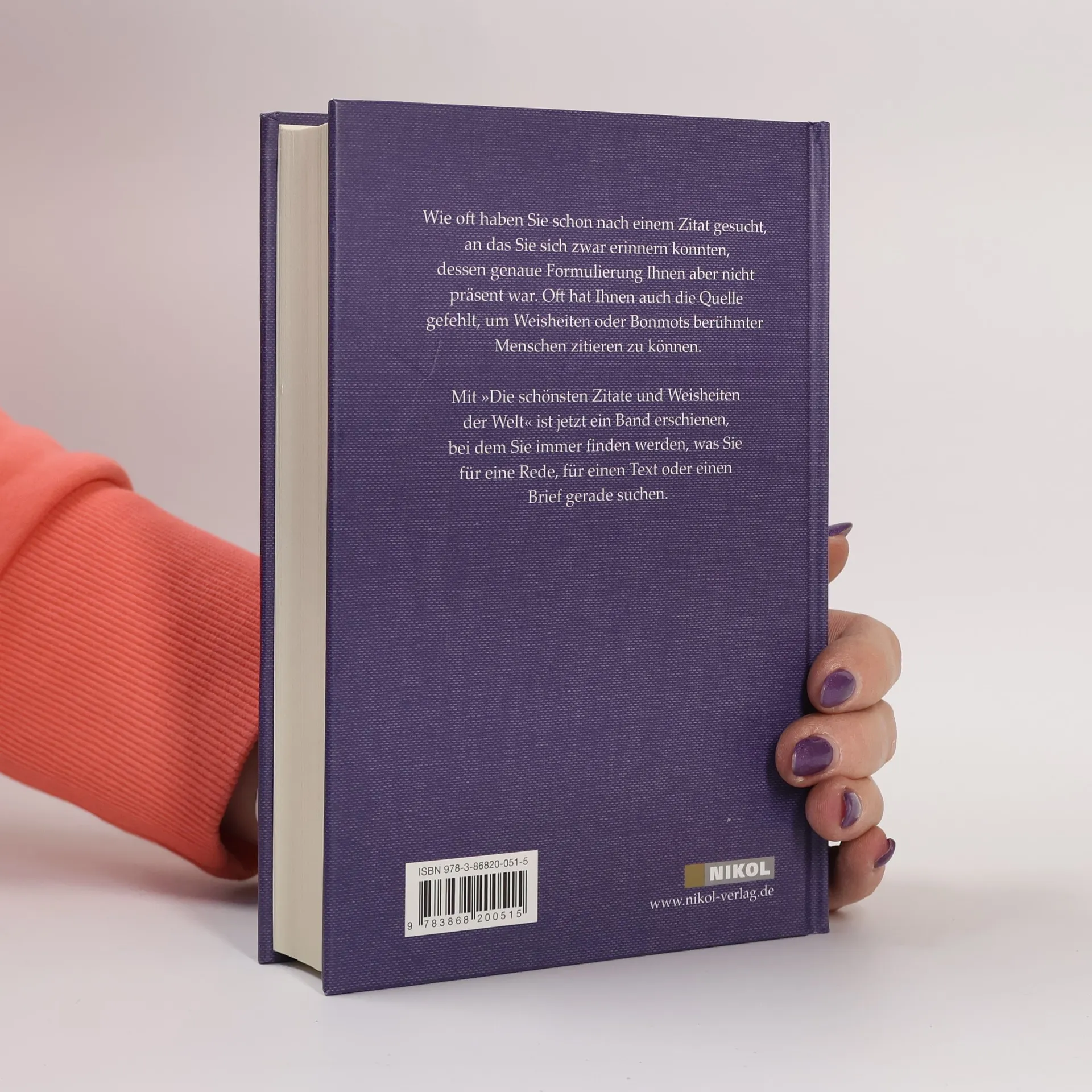 Wie oft haben Sie schon nach einem Zitat gesucht, an das Sie sich zwar erinnern konnten, dessen genaue Formulierung Ihnen aber nicht präsent war. Oft hat Ihnen auch die Quelle gefehlt, um Weisheiten oder Bonmots berühmter Menschen zitieren zu können. Mit 'Die schönsten Zitate und Weisheiten der Welt' ist jetzt ein Band erschienen, bei dem Sie immer finden werden, was Sie für eine Rede, für einen Text oder einen Brief gerade suchen.