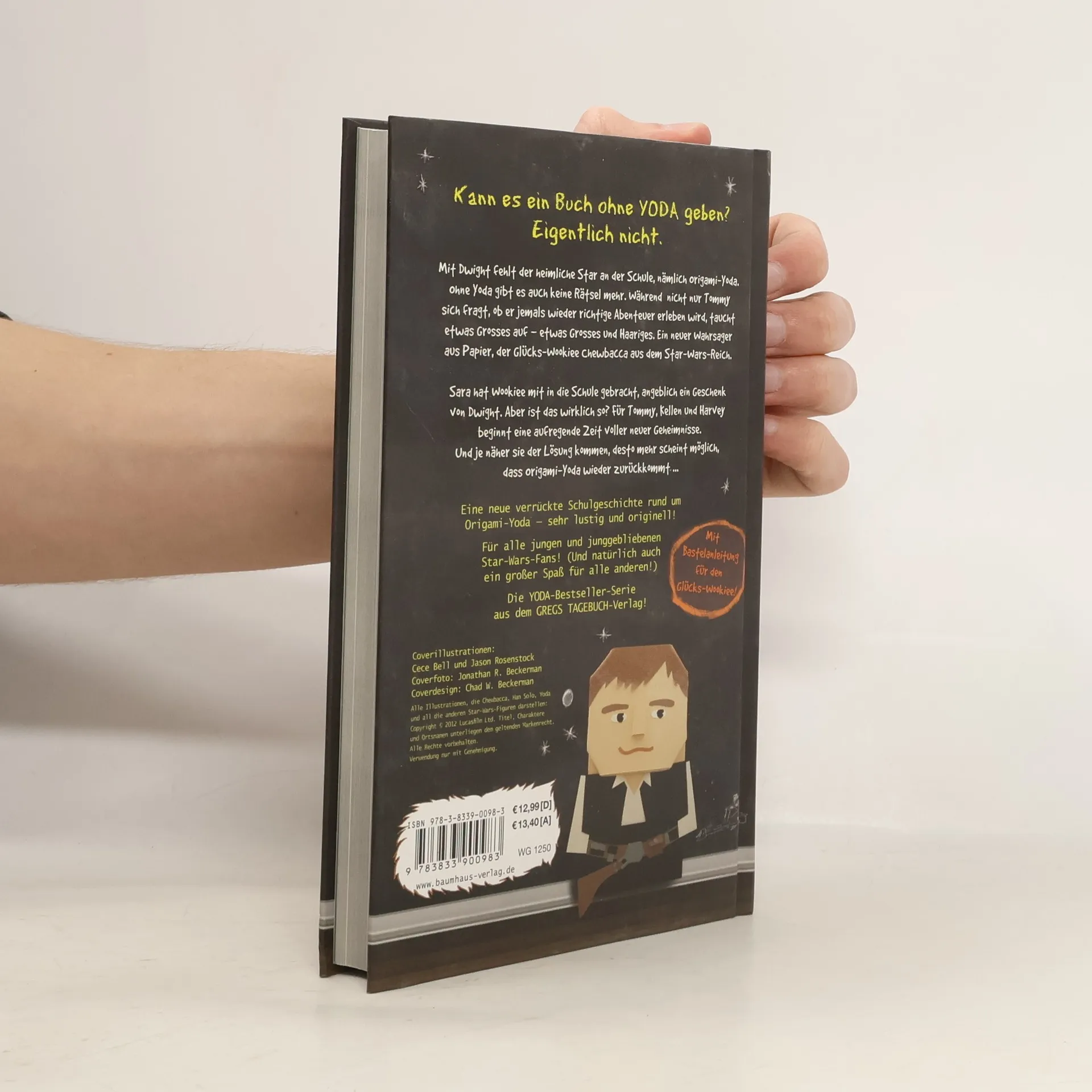 Nachdem Dwight samt Origami-Yoda von der Schule suspendiert wurde, sind seine Mitschüler völlig aufgeschmissen. Nicht nur Tommy fragt sich, ob er jemals wieder richtige Abenteuer erleben wird, als plötzlich etwas Großes auftaucht - etwas Großes und Haariges: ein neuer Wahrsager aus Papier, der Glücks-Wookiee Chewbacca aus dem Star-Wars-Reich. Auf Saras Fingern gibt er zwar Ratschläge, doch Dwight kann er trotzdem nicht ersetzen. Schlimmer noch: Tommy und seine Freunde erfahren, dass Dwight die neue Schule ohne Origami-Yoda besucht und sich völlig normal verhält! Höchste Zeit, etwas zu unternehmen!