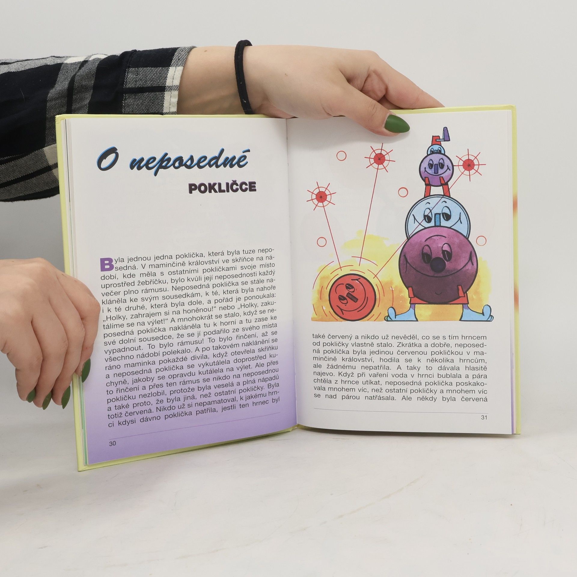Víte jaké království má maminka malého kluka a holčičky? Přece kuchyni. Každá věc má v kuchyni svoje místo a večer, když jdou všichni spát, věci oživnou. Tak se můžete dočíst o krásné paní ze staré plechové krabice, o hodinách, které měly líné ručičky, o neposedné červené pokličce, která moc toužila zahrát si v orchestru, o nešikovné nové vařečce nebo o hrníčku se srdíčky, který neměl rád čaj.