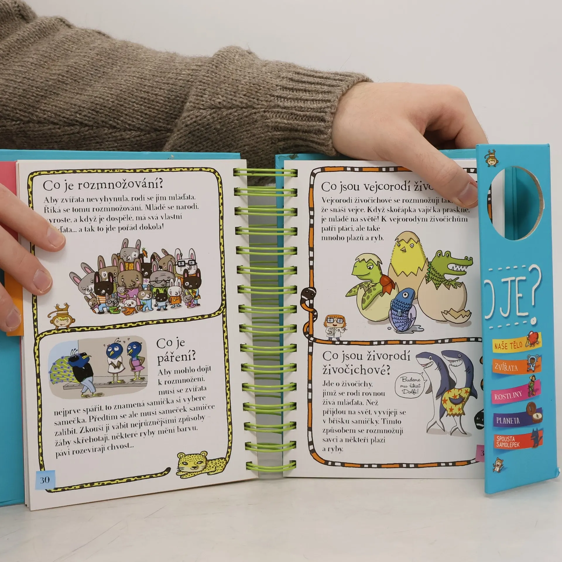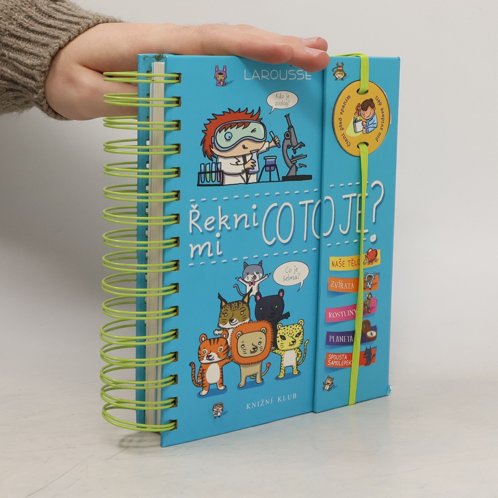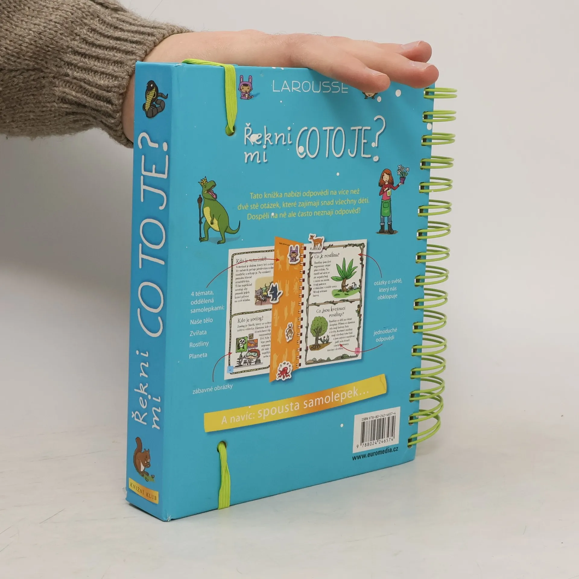 Další z úspěšných encyklopedií pro nejmenší (Řekni mi proč, Řekni mi jak) obsahuje odpovědi na více než 200 běžných dětských otázek. Jsou uspořádané podle témat do čtyř velkých oblastí: lidské tělo, zvířata, rostliny, Země. S pomocí této knihy mohou děti zábavným způsobem objevovat svět kolem sebe. Dozvědí se základní informace o fungování svého těla, o rozmanitosti svět zvířat, o životě rostlin a o planetě, na níž žijeme. Každou tematickou kapitolu doplňují samolepky a veselé obrázky.