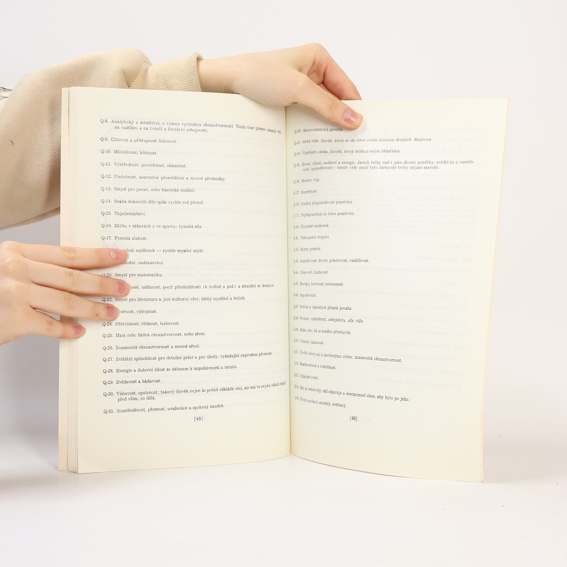 "Užitečná a zábavná kniha dávající grafologii zcela do rukou laika a umožňující mu analysovati každý rukopis bez studia nebo znalostí věci"