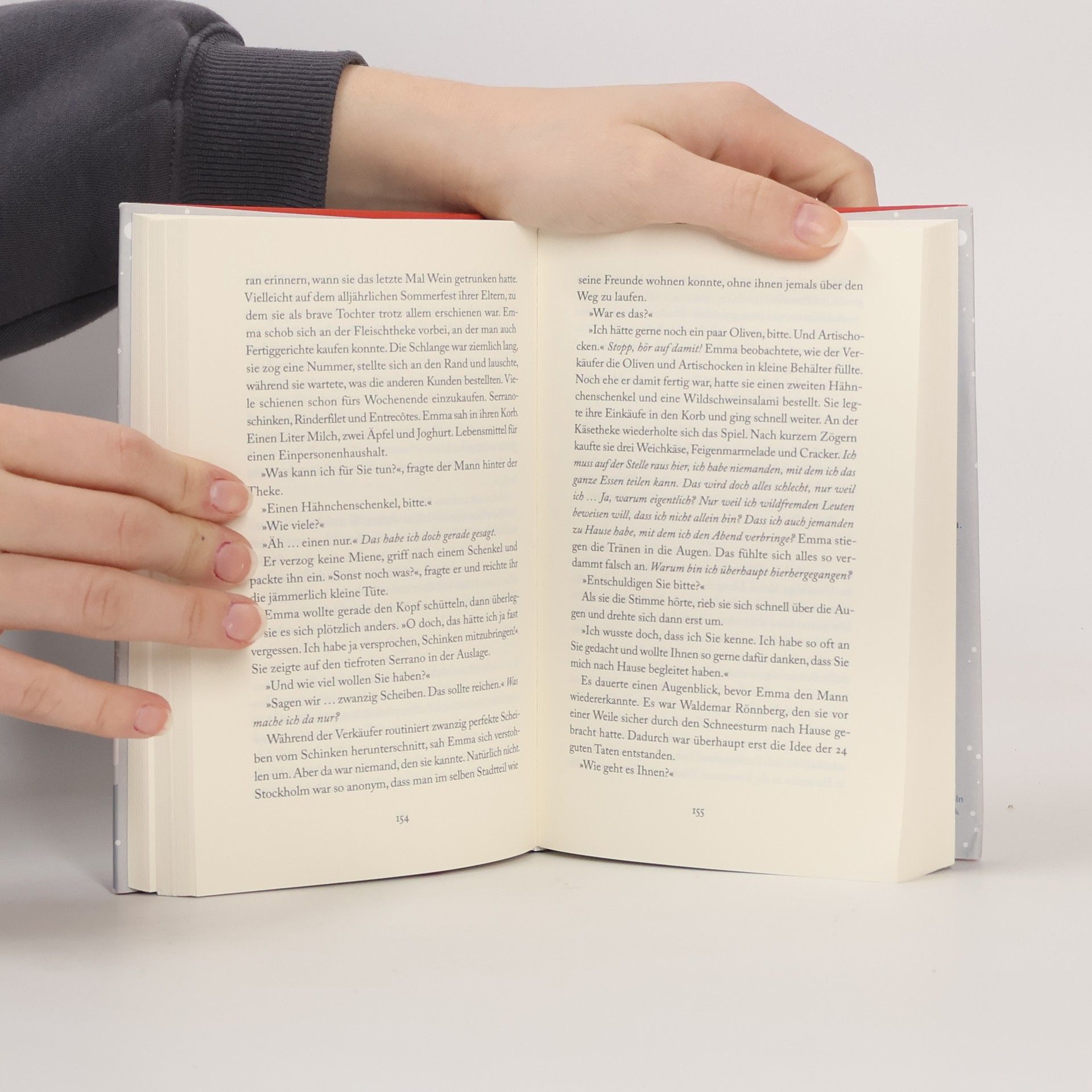 Zwei Jahre ist es her, dass Emma ihren Lebensgefährten Niklas bei einem Autounfall an Heiligabend verloren hat. Seitdem versteckt sie sich in ihrem kleinen Einrichtungs- und Geschenkeladen vor dem Leben. Tagsüber verkauft sie Teeservices und Geschirrtücher, nachts sitzt sie allein auf dem Dach ihres Hauses und blickt über Stockholm. Doch mit dem nahenden Fest der Liebe steht auch das Weihnachtsgeschäft vor der Tür. Und mit ihm ihre Schwester Magda, die alles dafür tun will, dass Emma ihren Laden, der kurz vor der Insolvenz steht, nicht verliert. Als Emma am Vorabend des ersten Dezembers einen alten Mann im Schneesturm nach Hause bringt, merkt sie, wie gut es ihr tut, anderen zu helfen. Sie fasst einen Entschluss: Sie wird 24 gute Taten vollbringen – eine für jeden Tag bis Heiligabend. Durch die Türchen ihres ganz persönlichen Adventskalenders schlüpft sie in die Leben ihrer Mitmenschen. Dabei findet Emma nicht nur neue Freunde, sondern schließlich auch sich selbst – und eine neue Liebe ... Wochenlang Nummer 1 auf der schwedischen Bestsellerliste: eine warme, aufrichtige Geschichte darüber, was Weihnachten so besonders macht.