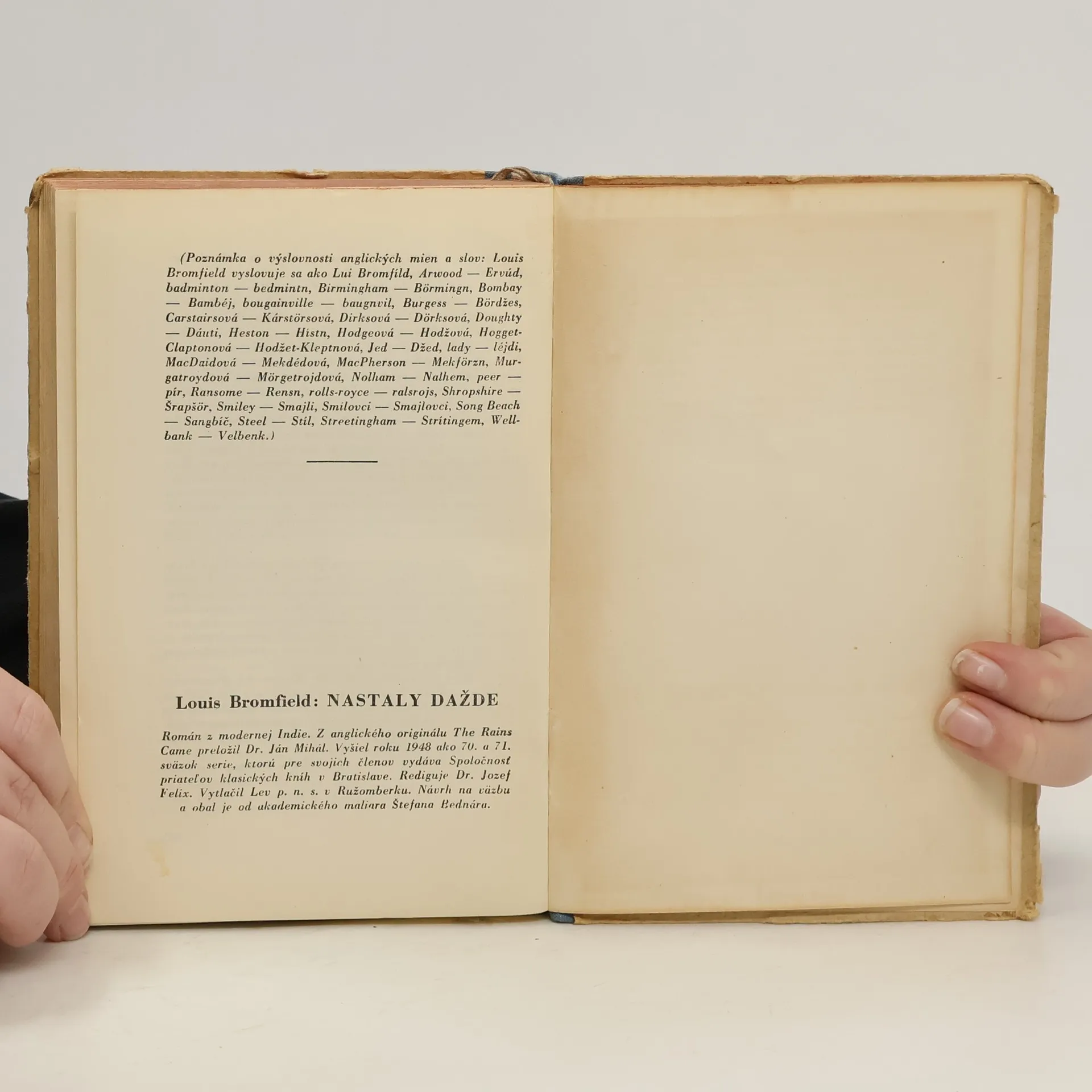 Dvojzväzkový román amerického autora, ktorého dej sa odohráva v Indii, v čase veľkej prírodnej katastrofy. Bromfield ako dobrý znalec pomerov a výborný psychológ odhaľuje charaktery ľudí a podivné zmeny, ktoré sa v nich odohrávajú v najťažších životných podmienkach – zbavujú sa sebeckosti, malichernosti, získavajú najušľachtilejšie vlastnosti, konajú obetavo, očisťujú sa. Opravdivú lásku prežíva po tomto duševnom obrodení hrdinka románu Edvina a pred smrťou naplňuje svoj život. Pozn. Číslovanie stran pokračuje od 1. dielu - 2. diel začína číslom 342