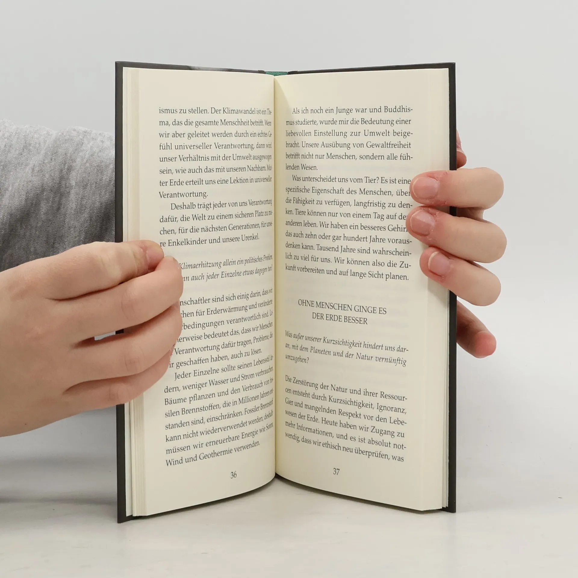 Gemeinsam unsere Umwelt schützen! Ein Weckruf gegen Stillstand und Ignoranz Wie steht es um unseren Planeten? Trockenheit, Dürre und Waldbrände verursachen verheerende Schäden. Klimaflüchtlinge ertrinken im Meer, und das Artensterben nimmt alarmierende Ausmaße an. Der Klimawandel ist nicht mehr zu leugnen – das Überleben der Menschheit steht auf dem Spiel! In seinem neuen Werk ruft der Dalai Lama dazu auf, unsere universelle Verantwortung zu erkennen und aktiv für den Klimaschutz einzutreten. Er hebt den spirituellen Aspekt der Klimakrise hervor: Wenn wir an Wiedergeburt glauben, profitieren wir selbst davon, die Natur zu schützen und nachhaltig zu leben. Das Buch enthält auch ein Interview mit dem Dalai Lama, in dem er über Herzensbildung, das Verschwinden der Gletscher und die positive Wirkung von Vegetarismus auf das Klima spricht. Sind wir noch zu retten? Der Dalai Lama appelliert eindringlich an die Welt, endlich zu handeln. Während einige Politiker den Klimawandel leugnen und andere Maßnahmen ablehnen, verlieren Millionen Menschen ihr Zuhause durch Naturkatastrophen. „Wir Menschen sind die einzige Spezies, die die Kraft hat, unseren Planeten zu zerstören oder zu retten.“ Der Dalai Lama fordert eine aktive Rolle für alle, um unseren Planeten zu schützen. Ein aufrüttelnder und inspirierender Aufruf an uns alle!