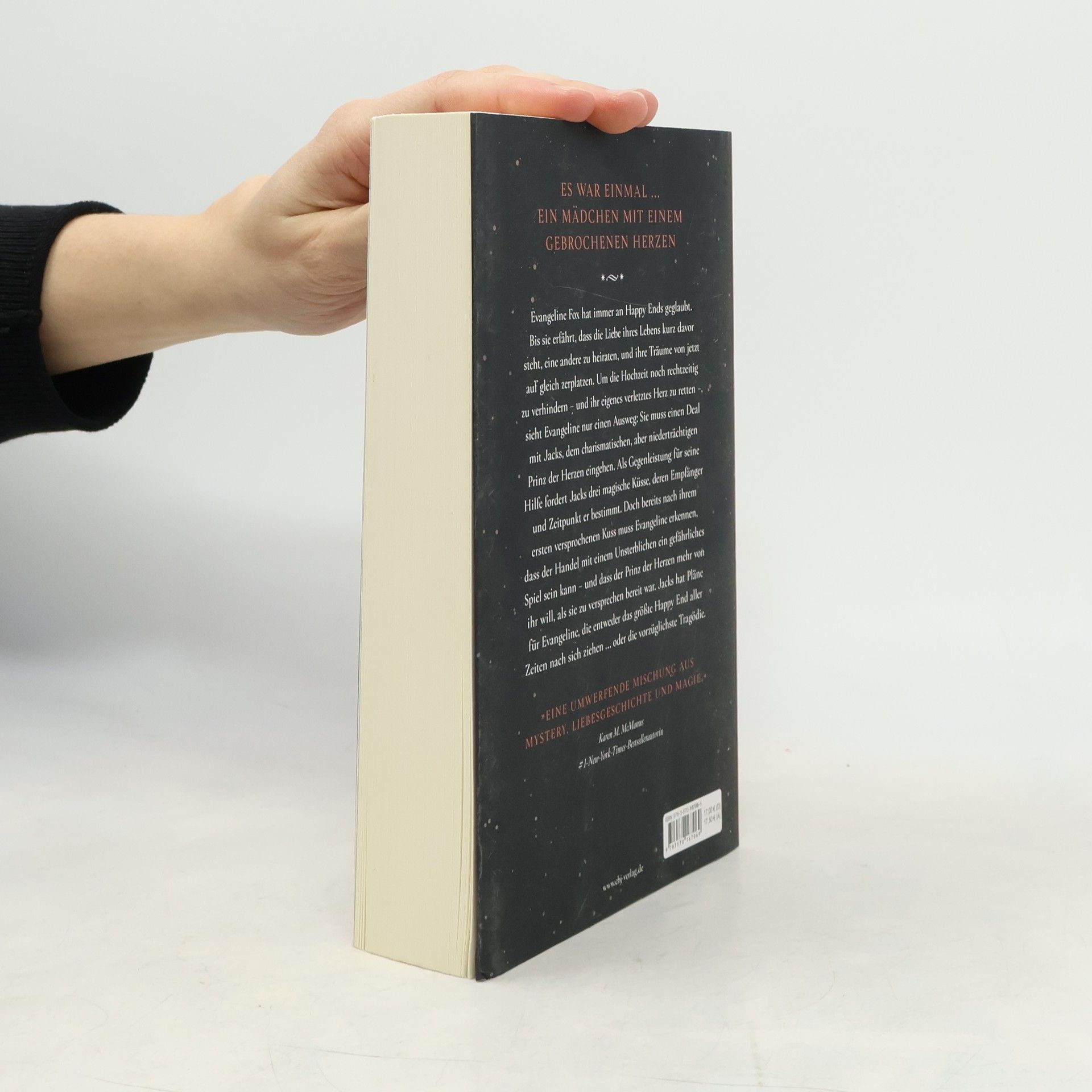 Es war einmal ... ein Mädchen mit einem gebrochenen Herzen Evangeline Fox hat immer an Happy Ends geglaubt. Bis sie erfährt, dass die Liebe ihres Lebens kurz davor steht, eine andere zu heiraten, und ihre Träume von jetzt auf gleich zerplatzen. Um die Hochzeit noch rechtzeitig zu verhindern – und ihr eigenes verletztes Herz zu retten –, sieht Evangeline nur einen Ausweg: Sie muss einen Deal mit Jacks, dem charismatischen, aber niederträchtigen Prinz der Herzen eingehen. Als Gegenleistung für seine Hilfe fordert Jacks drei magische Küsse, deren Empfänger und Zeitpunkt er bestimmt. Doch bereits nach ihrem ersten versprochenen Kuss muss Evangeline erkennen, dass der Handel mit einem Unsterblichen ein gefährliches Spiel sein kann – und dass der Prinz der Herzen mehr von ihr will, als sie zu versprechen bereit war. Jacks hat Pläne für Evangeline, die entweder das größte Happy End aller Zeiten nach sich ziehen … oder die vorzüglichste Tragödie.