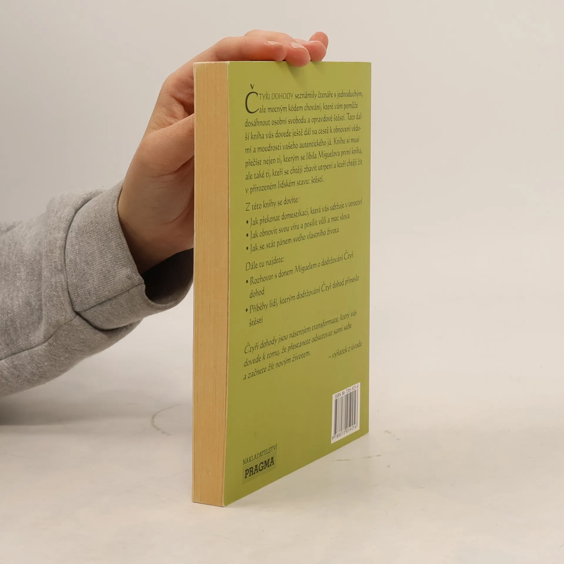 Čtyři dohody seznámily čtenáře s jednoduchým, ale mocným kódem chování, které vám pomůže dosáhnout osobní svobodu a opravdové štěstí. Tato další kniha vás dovede ještě dál na cestě k obnovení vědomí a moudrosti vašeho autentického já. Knihu si musí přečíst nejen ti, kterým se líbila Miguelova první kniha, ale také ti, kteří se chtějí zbavit utrpení a kteří chtějí žít v přirozeném lidském stavu: štěstí.