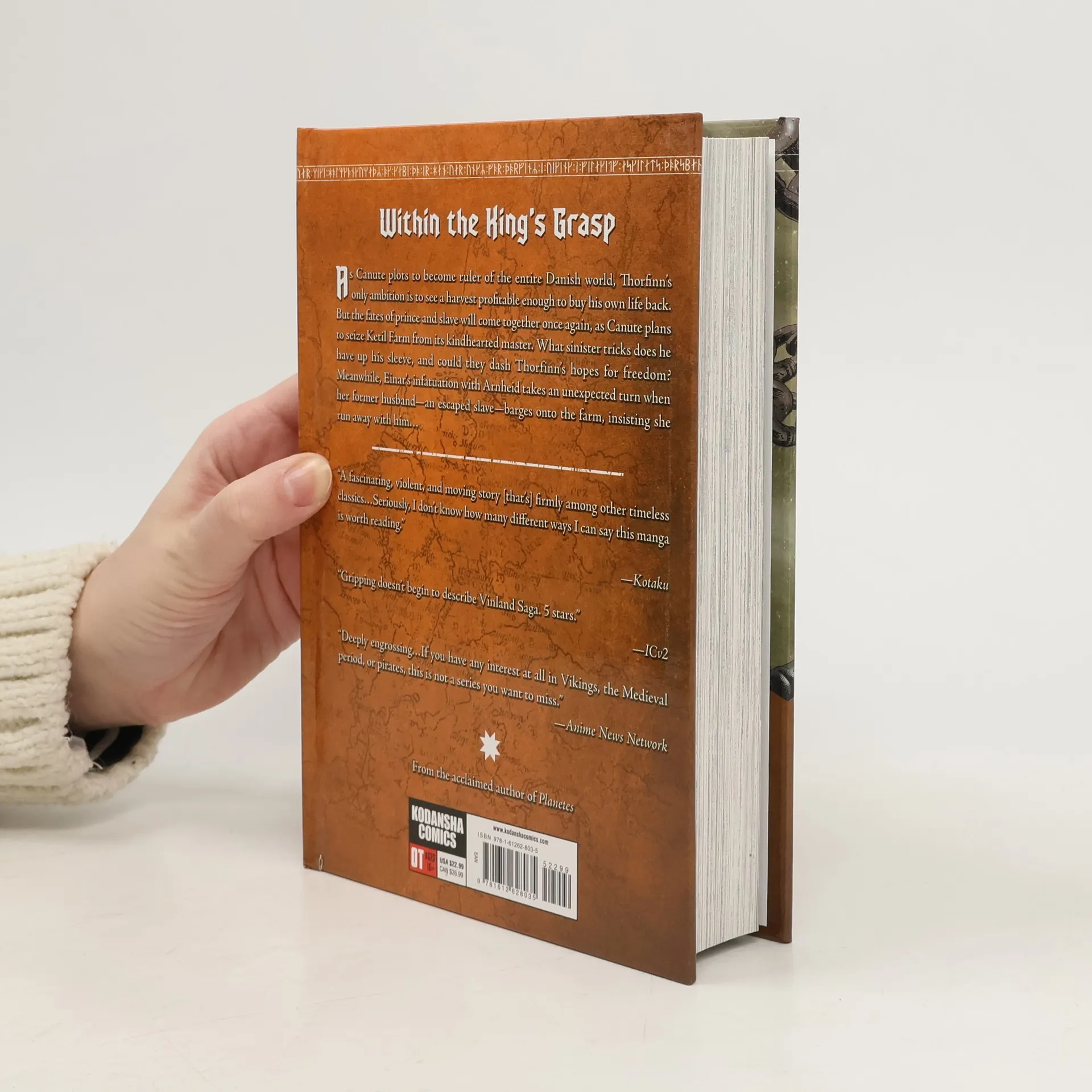 WITHIN THE KING’S GRASP As Canute plots to become ruler of the entire Danish world, Thorfinn’s only ambition is to see a harvest profitable enough to buy his own life back. But the fates of prince and slave will come together once again, as Canute plans to seize Ketil Farm from its kindhearted master. What sinister tricks does the have up his sleeve, and could they dash Thorfinn’s hopes for freedom? Meanwhile, Einar’s infatuation with Arnheid takes an unexpected turn when her former husband – an escaped slave – barges onto the farm, insisting she run away with him… “A fascinating, violent, and moving story [that’s] firmly among other timeless classics… Seriously, I don't know how many different ways I can say this manga is worth reading.” -Kotaku