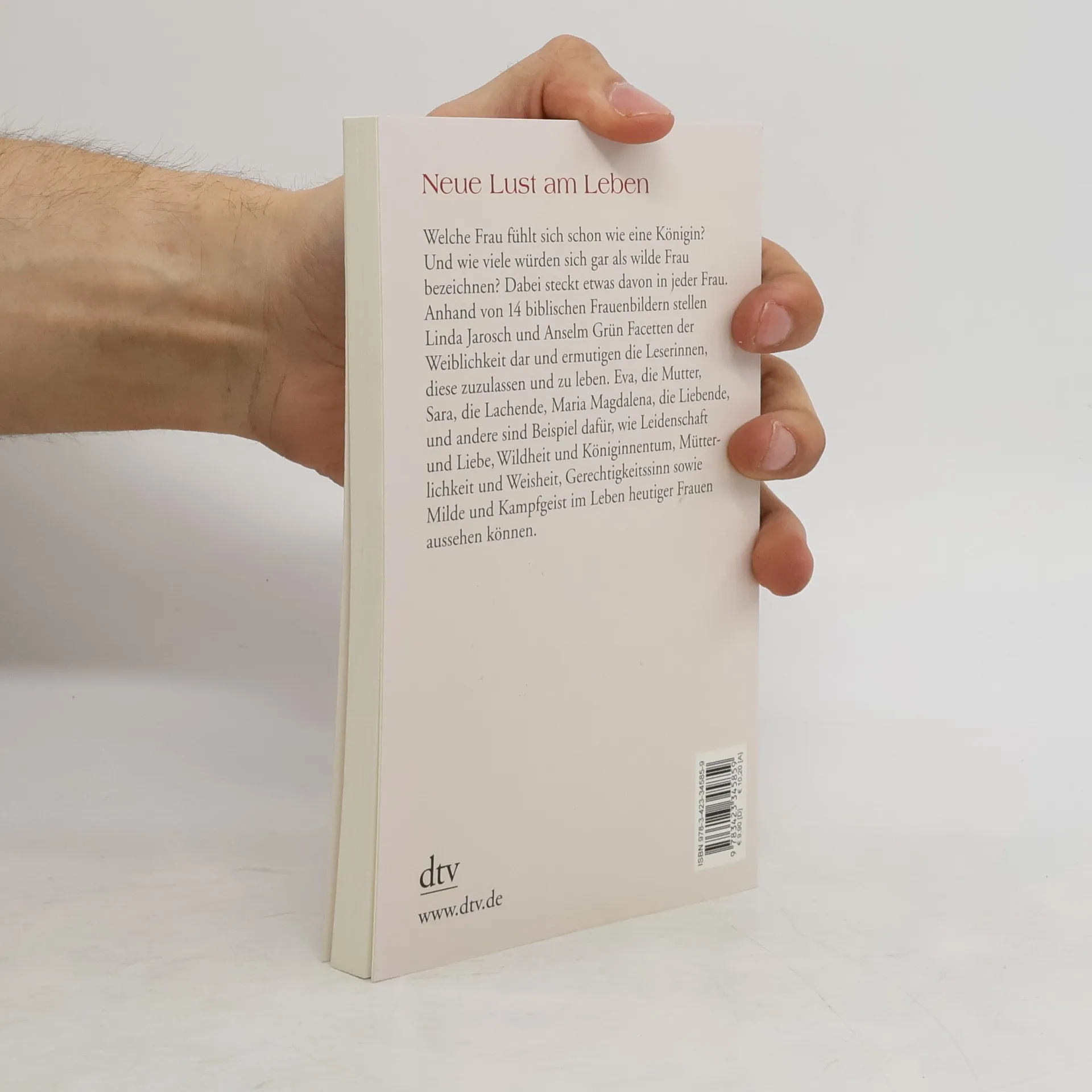 Neue Lust am Leben Facetten der Weiblichkeit, die in jeder Frau stecken, stellen Linda Jarosch und Anselm Grün anhand von 14 biblischen Archetypen dar: darunter Eva (die Mutter), Sara (die Lachende), Tamar (die wilde Frau), Mirjam (die Prophetin), Esther (die Königin), Maria Magdalena (die Liebende). Gemeinsam erörtern sie, wie Leidenschaft und Liebe, Wildheit und Königinnentum, Mütterlichkeit und Priestertum, Weisheit, Gerechtigkeitssinn sowie Kampfgeist und Milde im Leben heutiger Frauen aussehen können. Sie ermutigen die Leserinnen aber auch, diese Eigenschaften zuzulassen und zu leben.