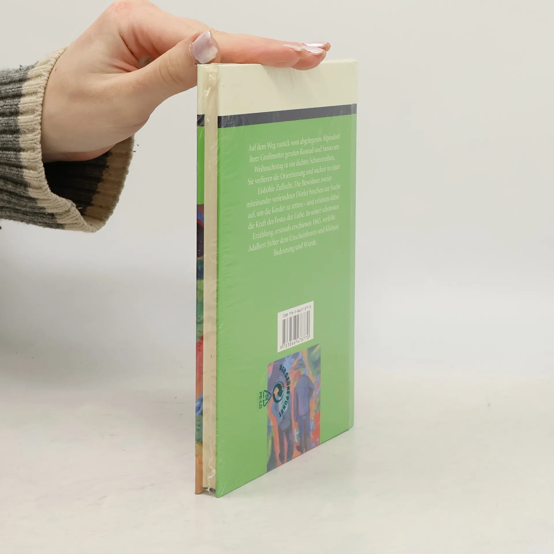 Auf dem Weg zurück vom abgelegenen Alpendorf ihrer Großmutter geraten Konrad und Sanna am Weihnachtstag in ein dichtes Schneetreiben. Sie verlieren die Orientierung und suchen in einer Eishöhle Zuflucht. Die Bewohner zweier miteinander verfeindeter Dörfer brechen zur Suche auf, um die Kinder zu retten – und erfahren dabei die Kraft des Festes der Liebe. In seiner schönsten Erzählung, erstmals erschienen 1845, verleiht Adalbert Stifter dem Unscheinbaren und Kleinen Bedeutung und Würde.