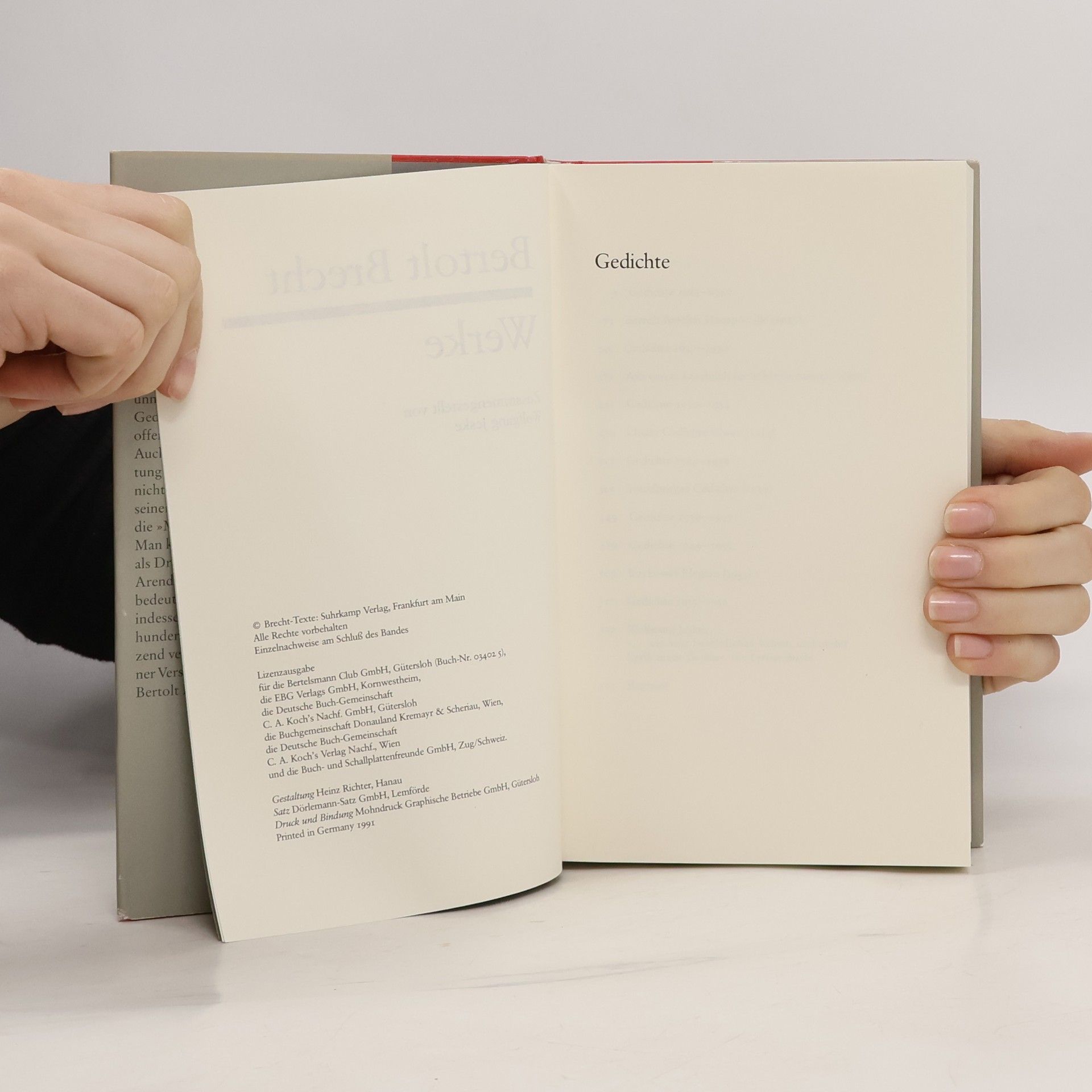 Die Gesamtausgabe der Gedichte von Brecht umfasst sieben Bände und enthält 90 ausgewählte Gedichte aus über tausend. Sie zeigt Brechts Meisterschaft in verschiedenen lyrischen Formen, beginnend mit seinen frühen Gedichten aus dem Ersten Weltkrieg bis zu seinen letzten lyrischen Äußerungen.