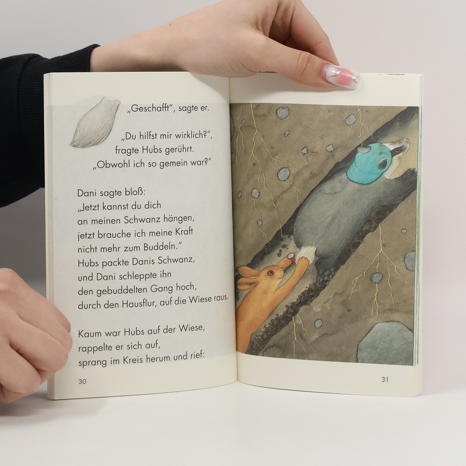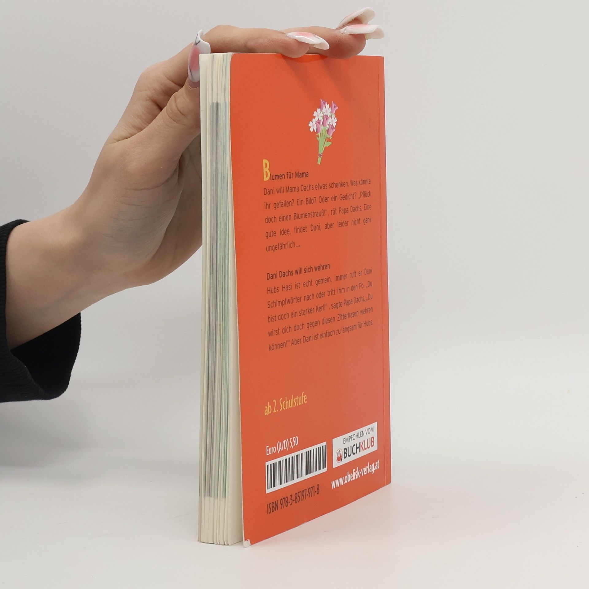 Der Band besteht aus den zwei Geschichten: Blumen für Mama und Dani Dachs will sich wehren. Blumen für Mama: Dani will Mama Dachs etwas schenken. Was könnte ihr gefallen? Ein Bild? Oder ein Gedicht? „Pflück doch einen Blumenstrauß!“, rät Papa Dachs. Eine gute Idee, findet Dani, aber leider nicht ganz ungefährlich … Dani Dachs will sich wehren: Hubs Hasi ist echt gemein, immer ruft er Dani Schimpfwörter nach oder tritt ihm in den Po. „Du bist doch ein starker Kerl!“ , sagte Papa Dachs. „Du wirst dich doch gegen diesen Zitterhasen wehren können!“ Aber Dani ist einfach zu langsam für Hubs …